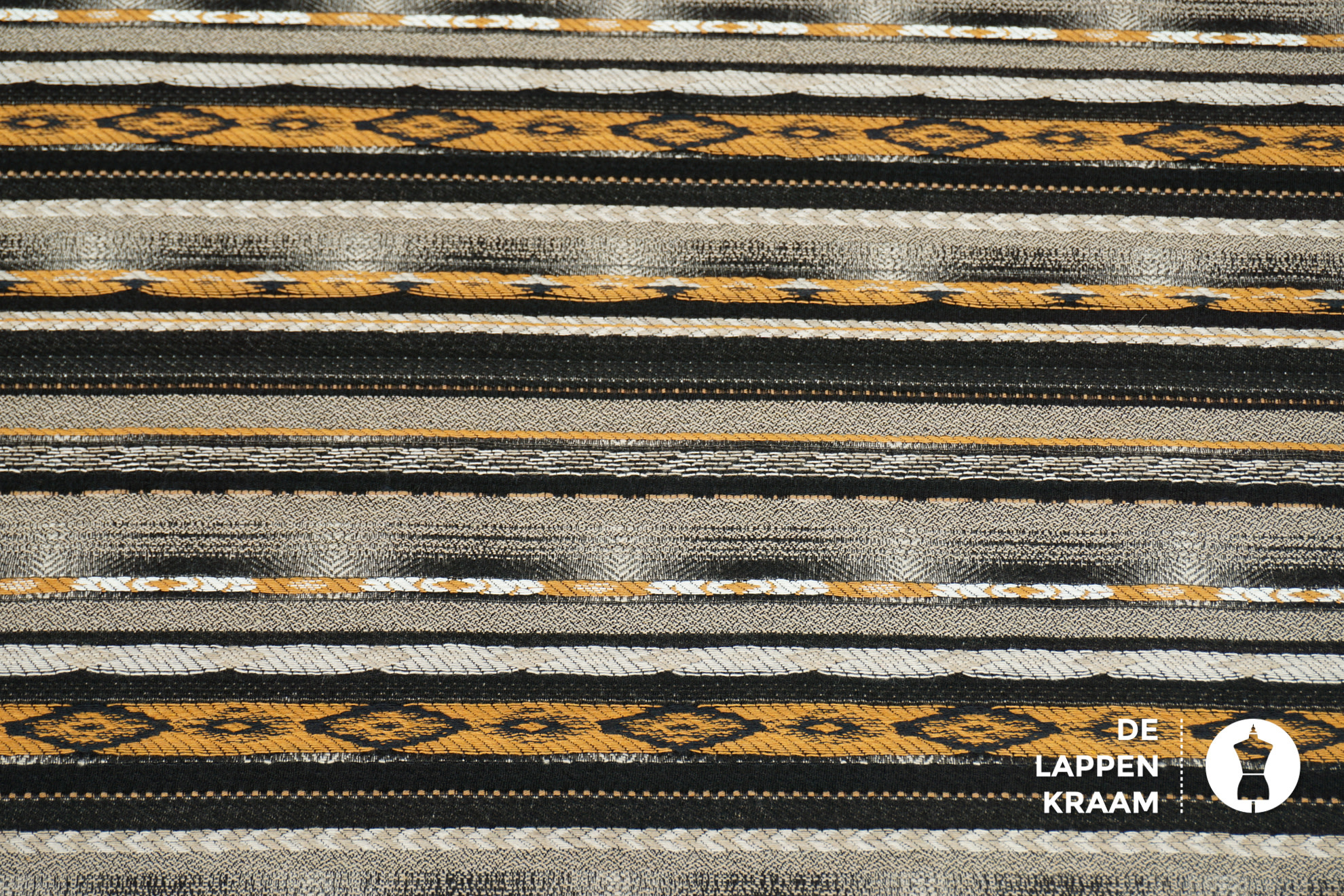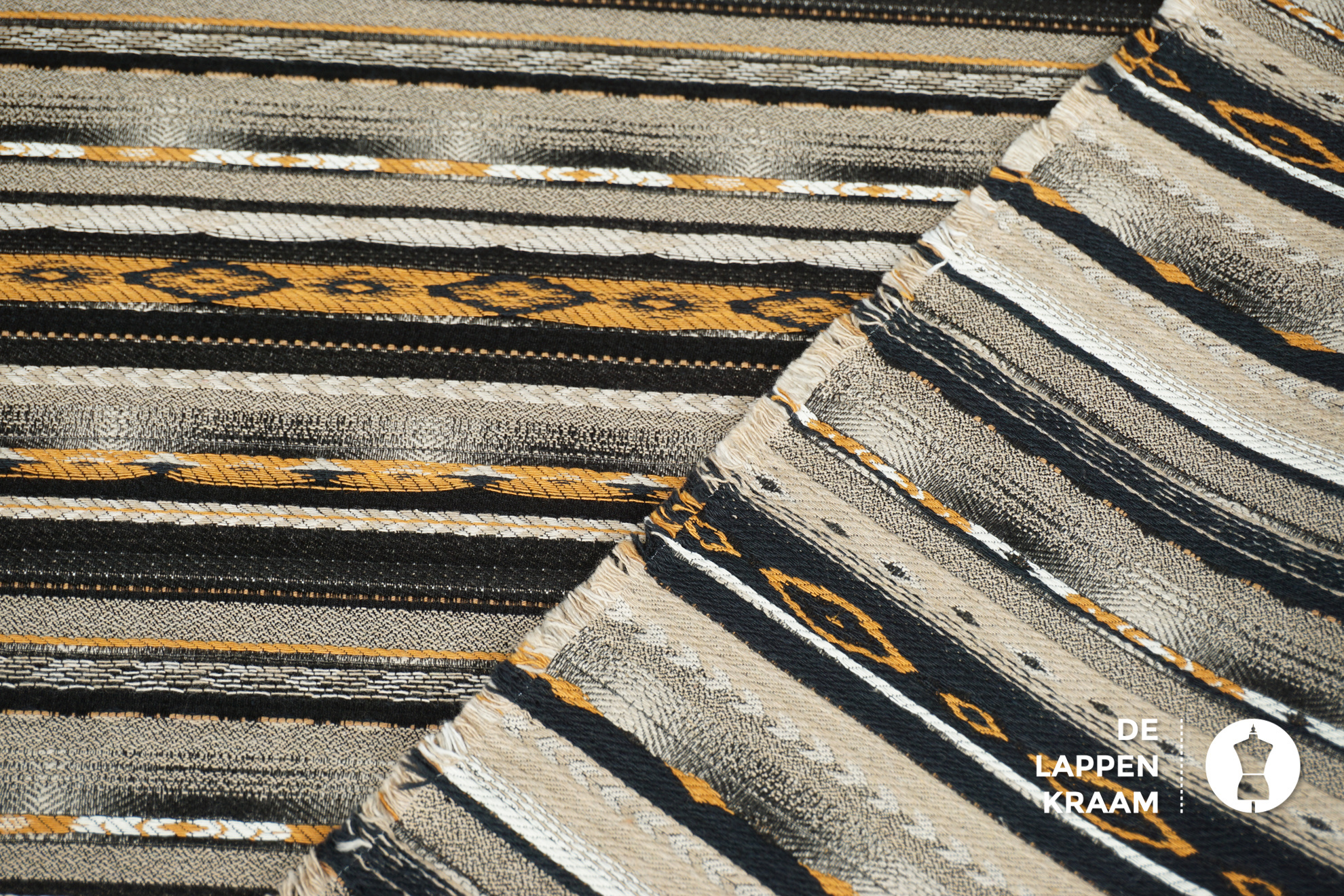 Geweven jacquard in een soort boho printje in beigetinten met oker. Lees meer