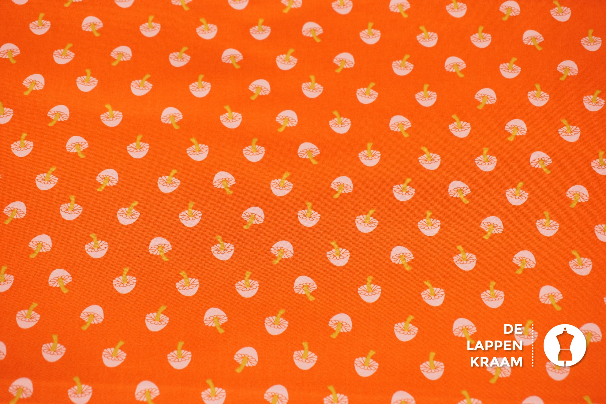 Japans quiltkatoen oranje met paddenstoeltjes