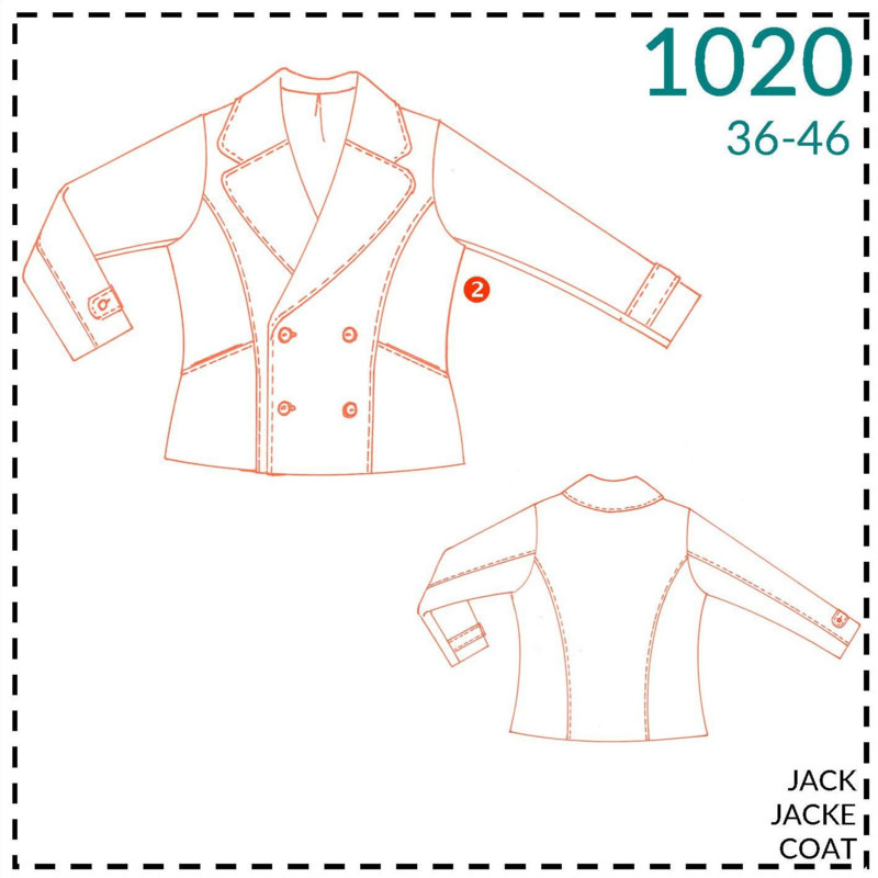 Kort jasje met grote kraag en revers, met zakken verwerkt in het zijpand. Te maken in maat 36 - 46 in moeilijkheidsgraad 2: beetje ervaring....
