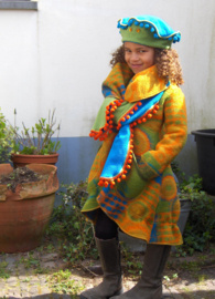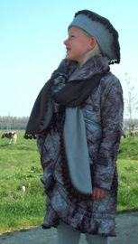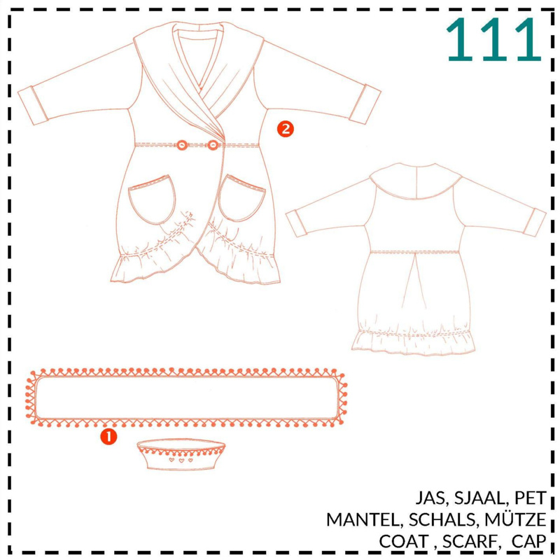 Jas met grote kraag, sluit met 2 knopen. Daarnaast ook een patroon voor een sjaal en baret. Lees meer
