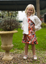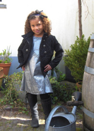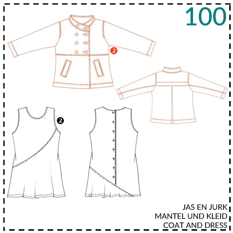 Kort jasje met een dubbele rij knopen met strookzakken en een plooi in het achterpand, en een jurk met klokkend effect en de sluiting aan de achterkant... Lees meer