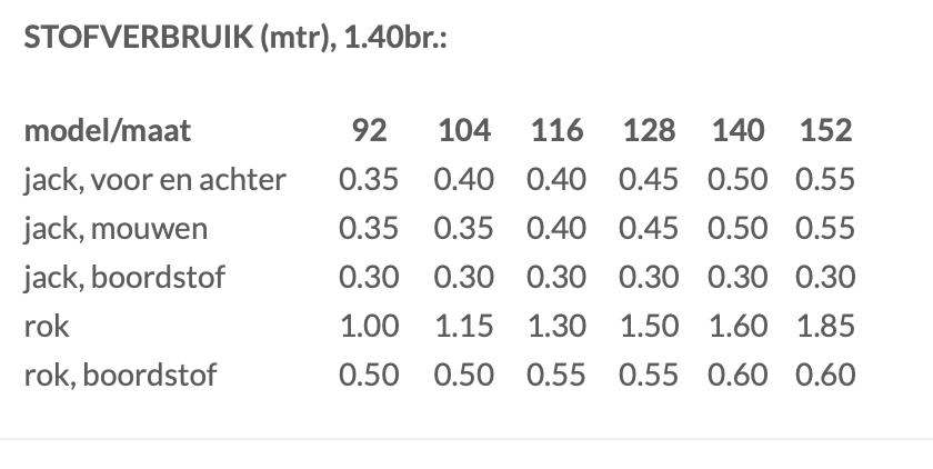 Te maken in maat 92 tm 152