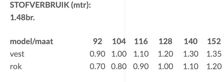 Te maken in maat 92 tm 152