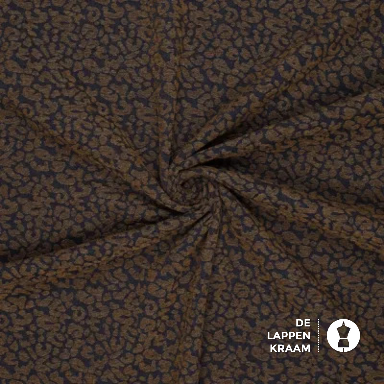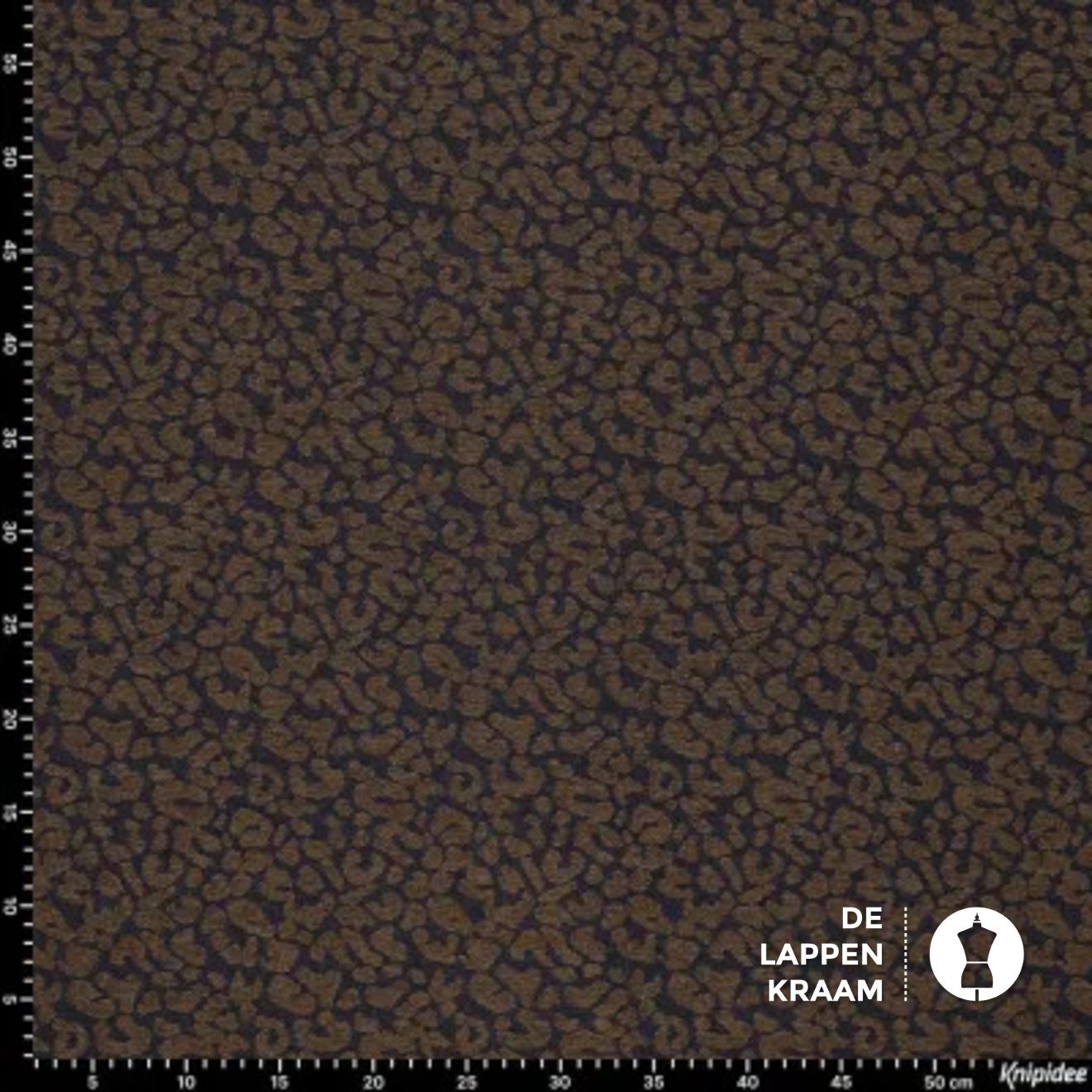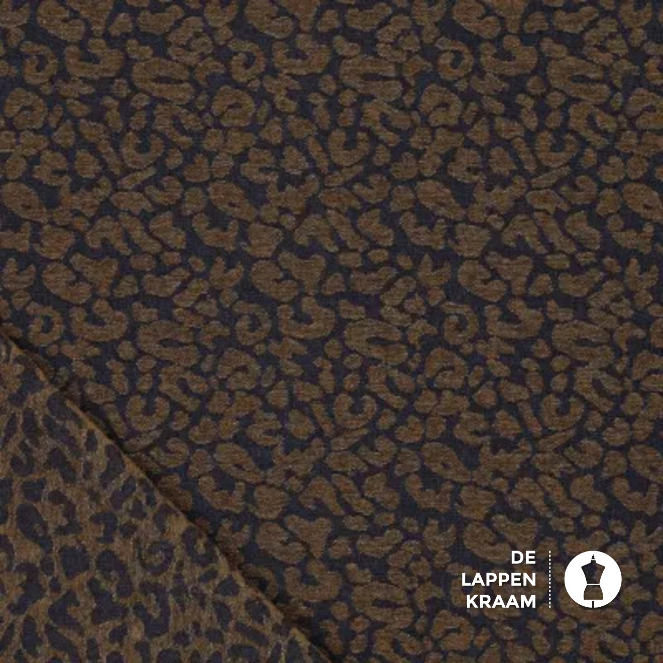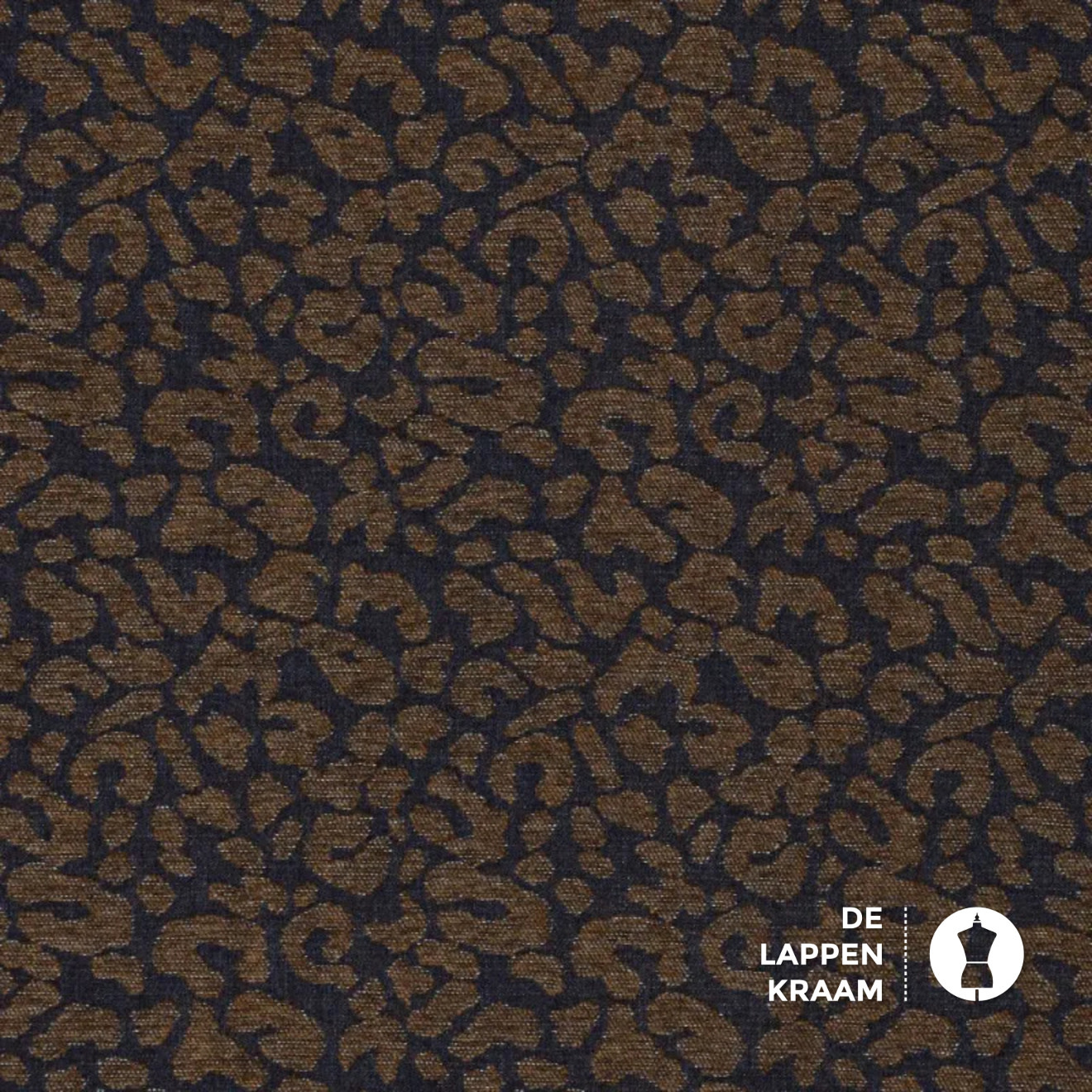 De denim-trend zet voort, en hoe! Deze blauwe jeans is weer helemaal van nu gemaakt met een chenille in bruin van panterprint. De chenille voelt licht fluwelig aan en ligt bovenop de basisstof. Top voor een broek, jasje, jumpsuit of jurk.... Lees meer
