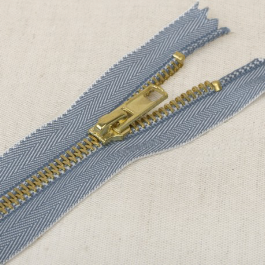 Jeansrits met gouden tandjes licht jeans gemeleerd 18cm