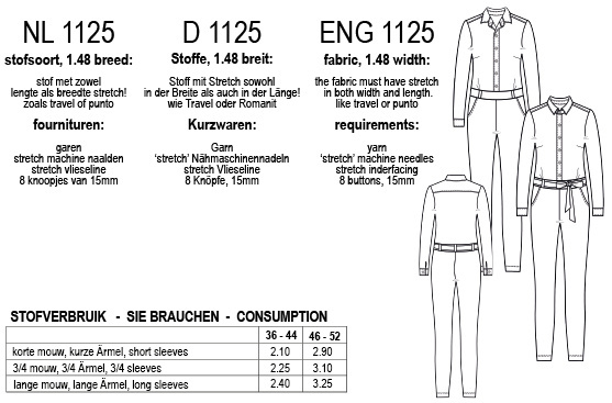 Deze jumpsuit maak je van stoffen waar zowel in de breedte als lengte rek zit, maar wel enigszins vormvast zijn. Denk hierbij aan travelstof of Punta di Roma.