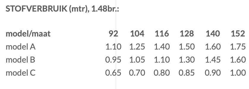Te maken in maat 92 tm 152
