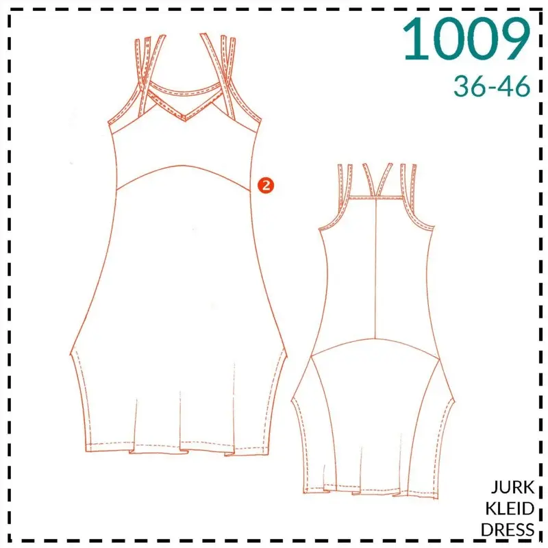 Zomerjurk met meerdere schouderbandjes. Het patroon valt strak op de borst en ruim op de buik/heup en heeft grote splitten. Te maken in maat 36-46 met moeilijkheidsgraad 2: beetje ervaring...