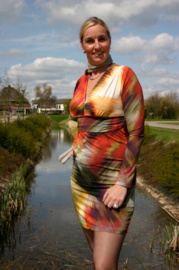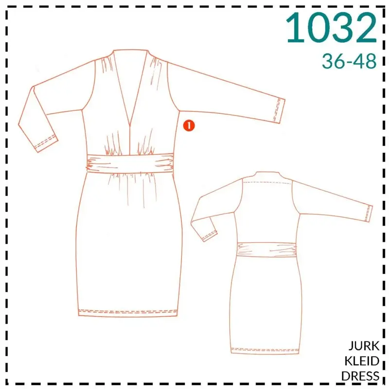 Glad zittende jurk, ingezet als taillestuk, met rimpels. Te maken in maat 36 - 48 met moeilijkheidsgraad 1: makkelijk.