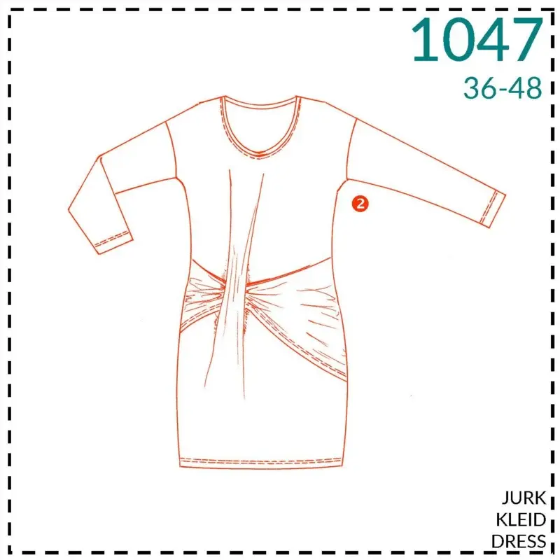 Strak zittende jurk met een geknoopt detail op de voorkant. Te maken in maat 36 - 48 met moeilijkheidsgraad 2: beetje ervaring... Lees meer