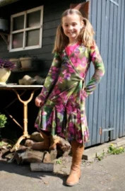 Legging met brede rand aan de zoom en een jurkje met knoop. Te maken in maten 92 - 104 - 116 - 128 - 140 - 152 met moeilijkheidsgraad 1: makkelijk... Lees meer