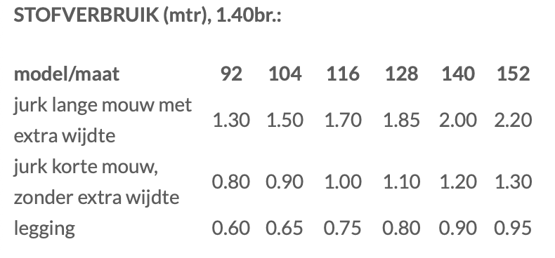 Te maken in maat 92 tm 152