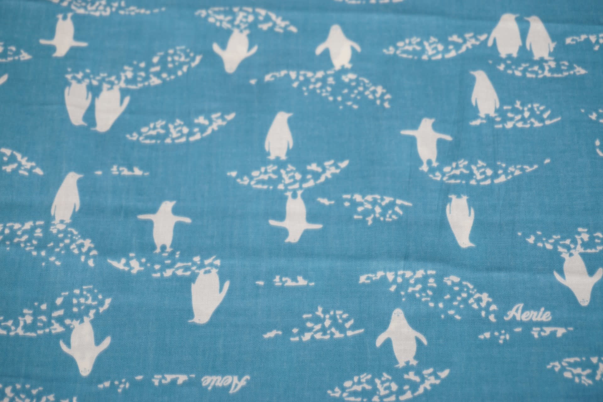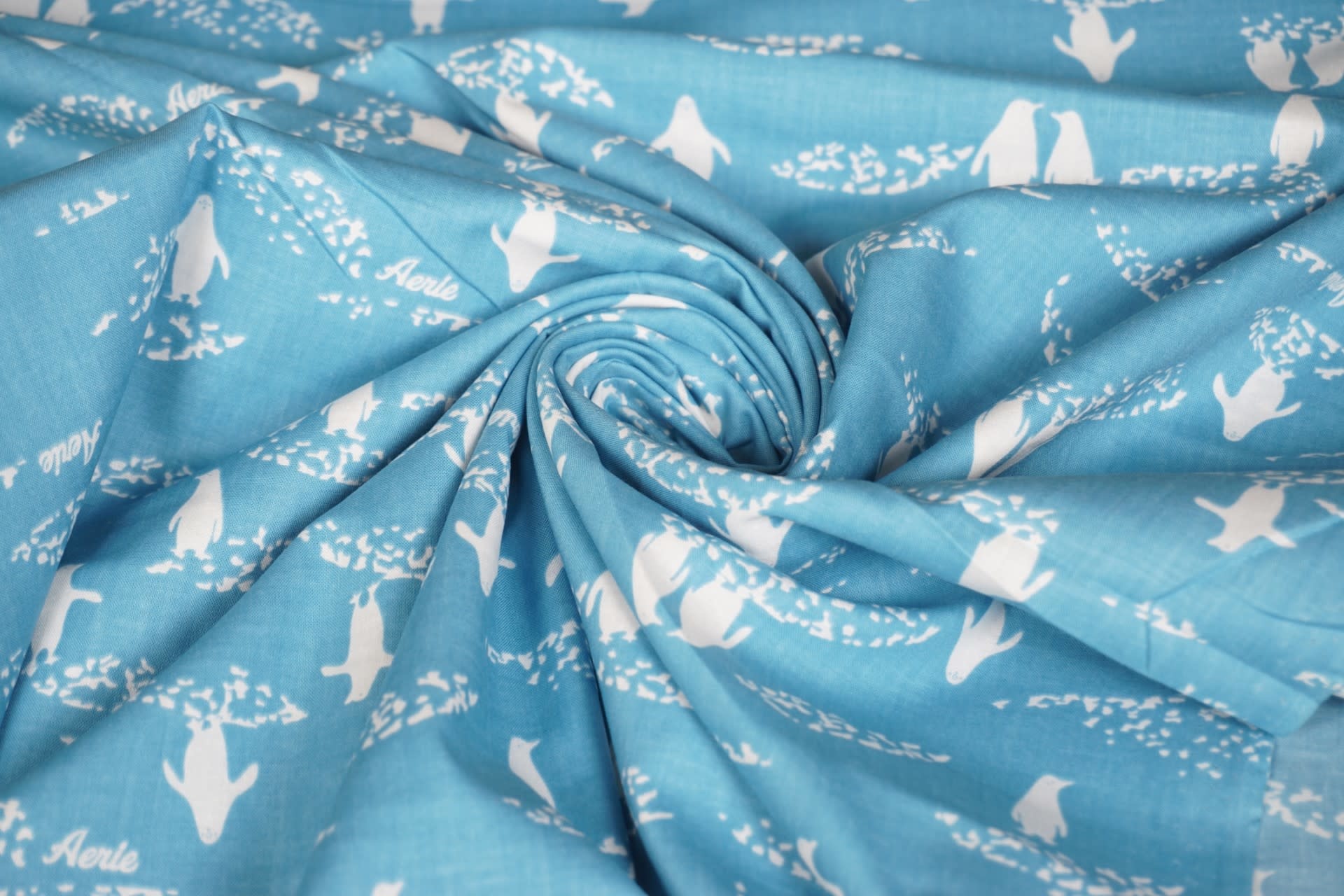 Deze schattige katoen stof is lichtblauw van kleur en heeft een dessin van verschillende witte pinguïns Lees meer