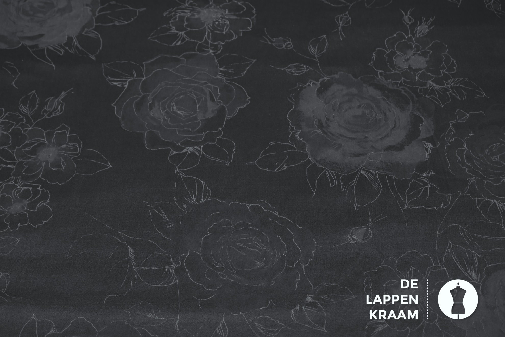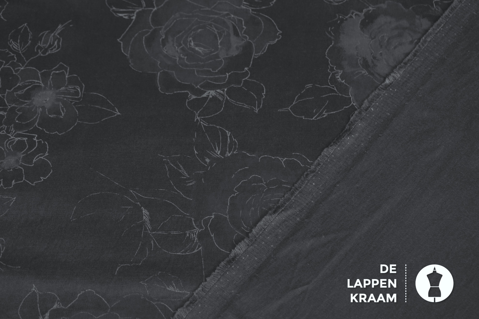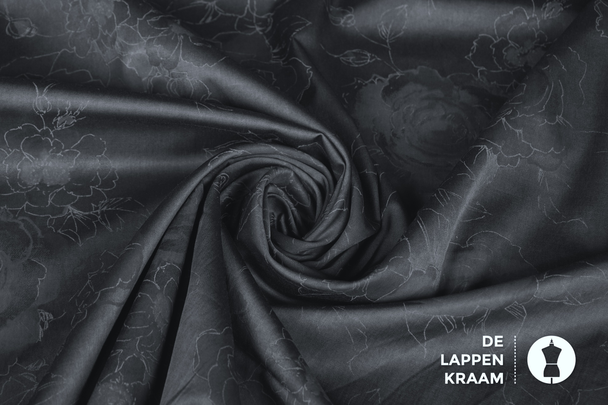 Black Friday Katoen stof in satijnbinding grijs met rozen