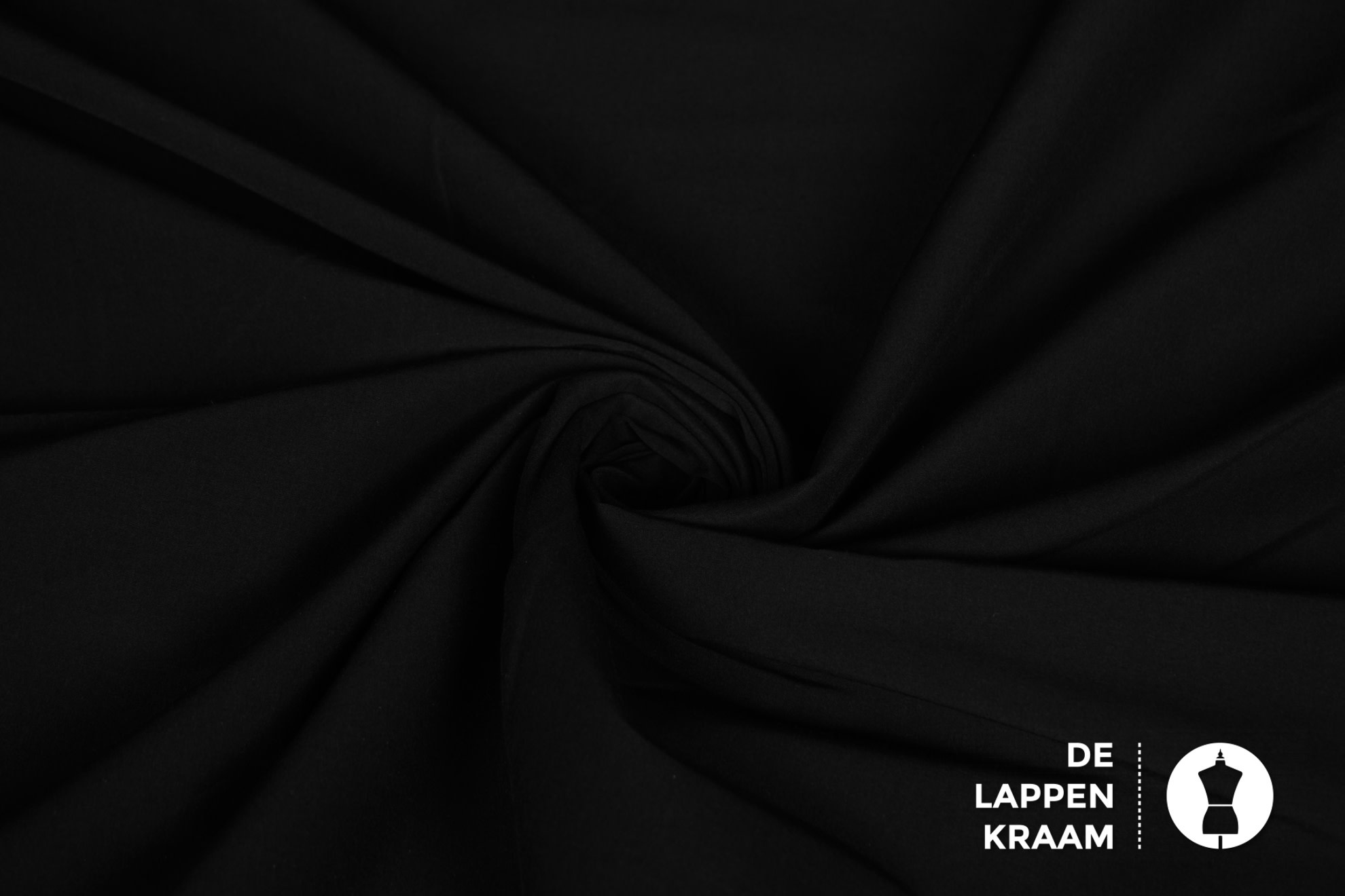 Deze zwarte stof heeft rek in de lengte in plaats van de breedte. Wij adviseren de stof te draaien om de rek toch in de breedte te hebben. Deze stof is heel soepel en valt prachtig.... Lees meer