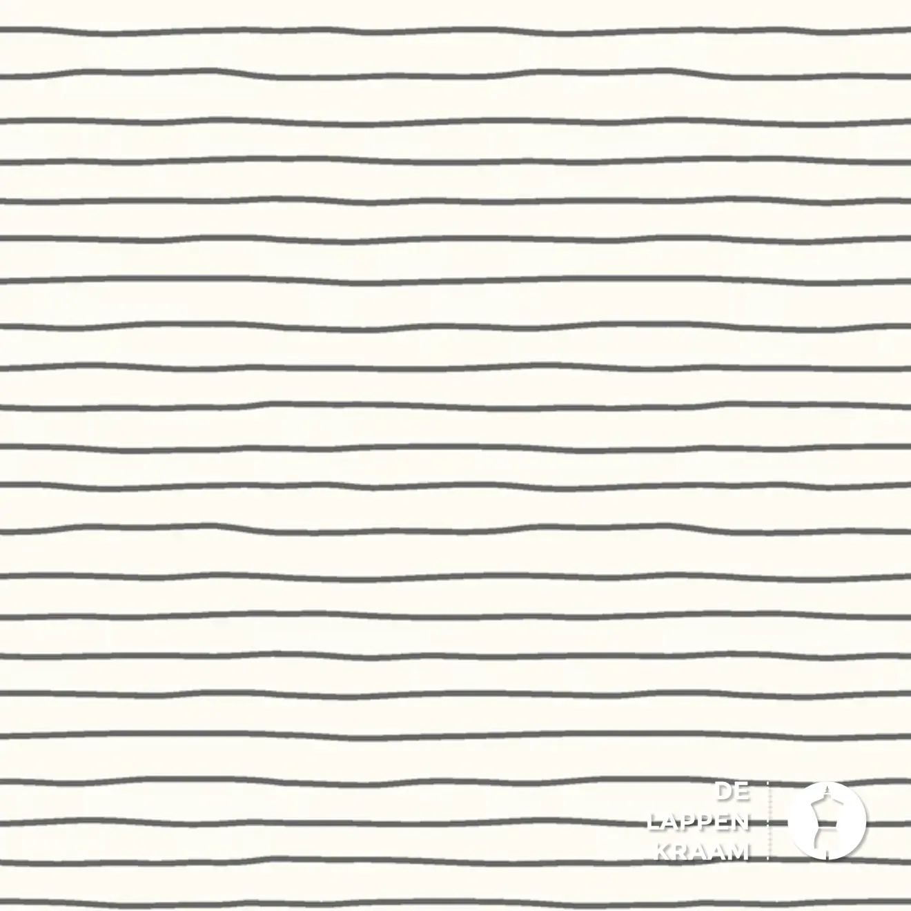 Katoenen tricot in gebroken wit met een kronkelende grijze streep. Lees meer