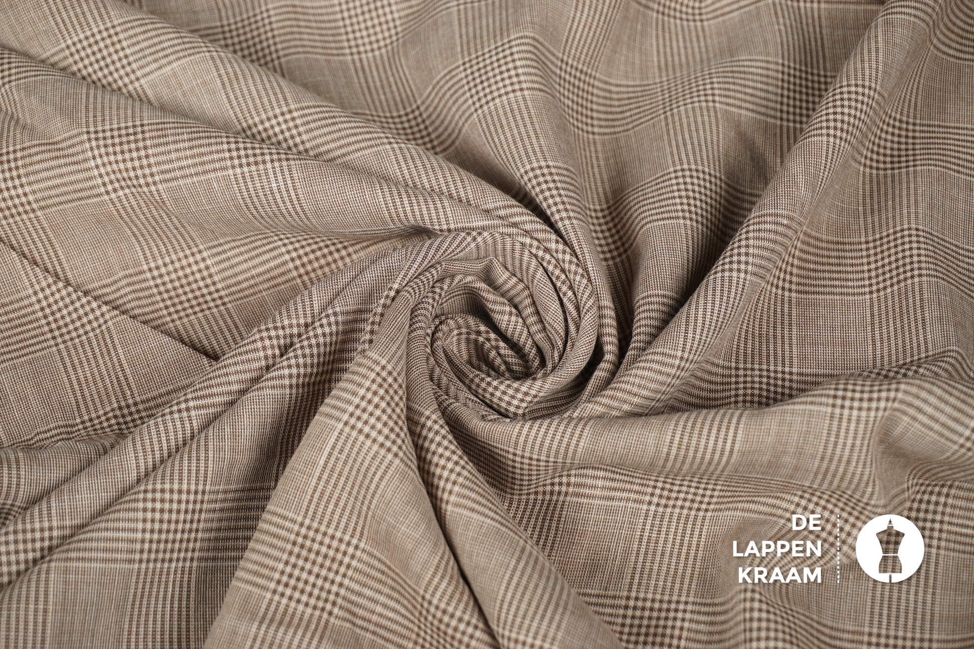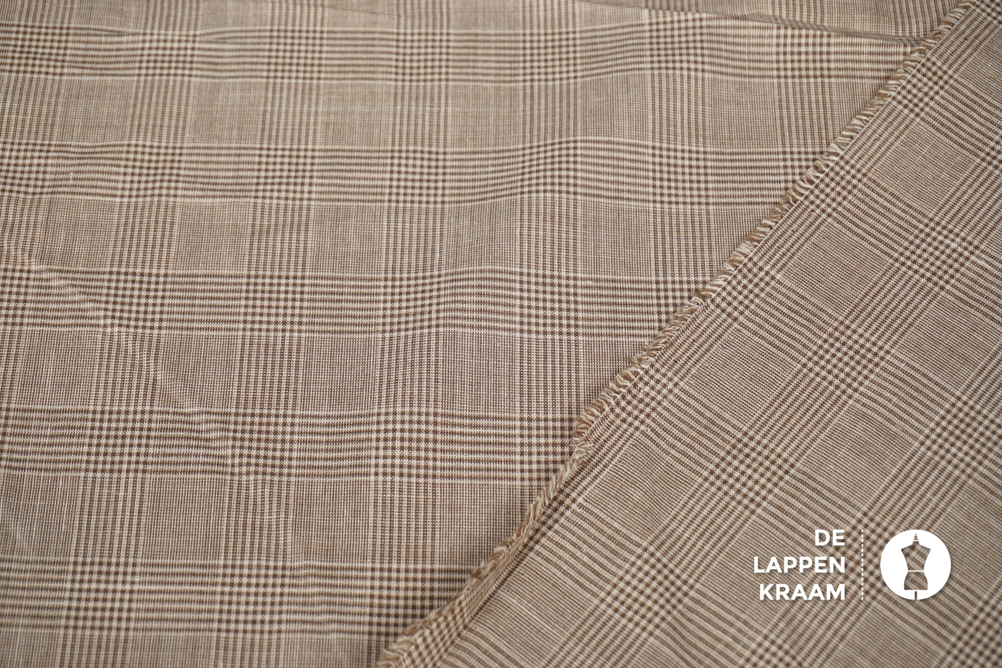 Een voile van 100% katoen in beige met een ruitje bestaande uit hele dunne lijnen in bruin en ecru. Je kijkt een beetje door deze stof heen.... Lees meer