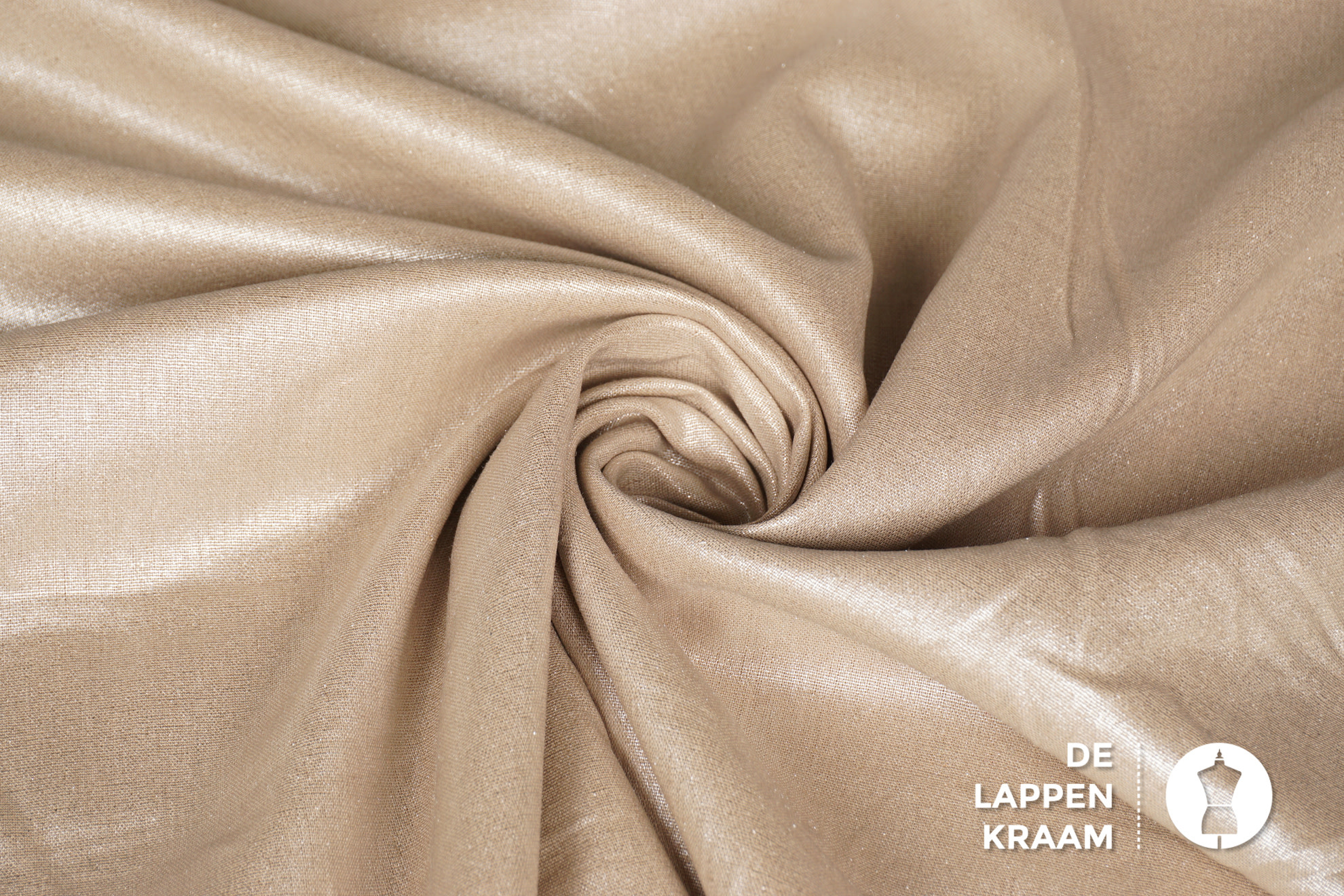 Door een zilveren laagje te printen op een beige ondergrond is een haast magische kleurschakering ontstaan die de stof doet "leven" . Dikte is zwaar genoeg voor een broek maar ook soepel genoeg voor blouse of jurk. Schijnt niet door.... Lees meer