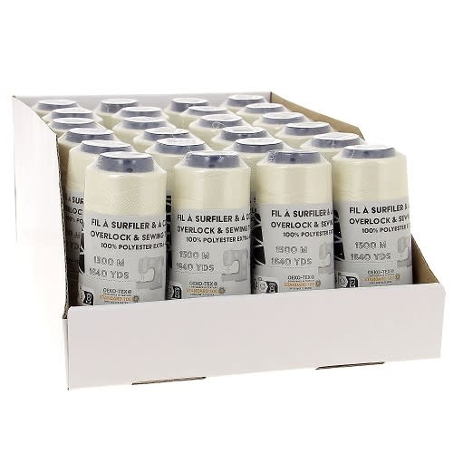 Lockgaren in het ecru, gemaakt van 100% polyester. 1500 meter per stuk.