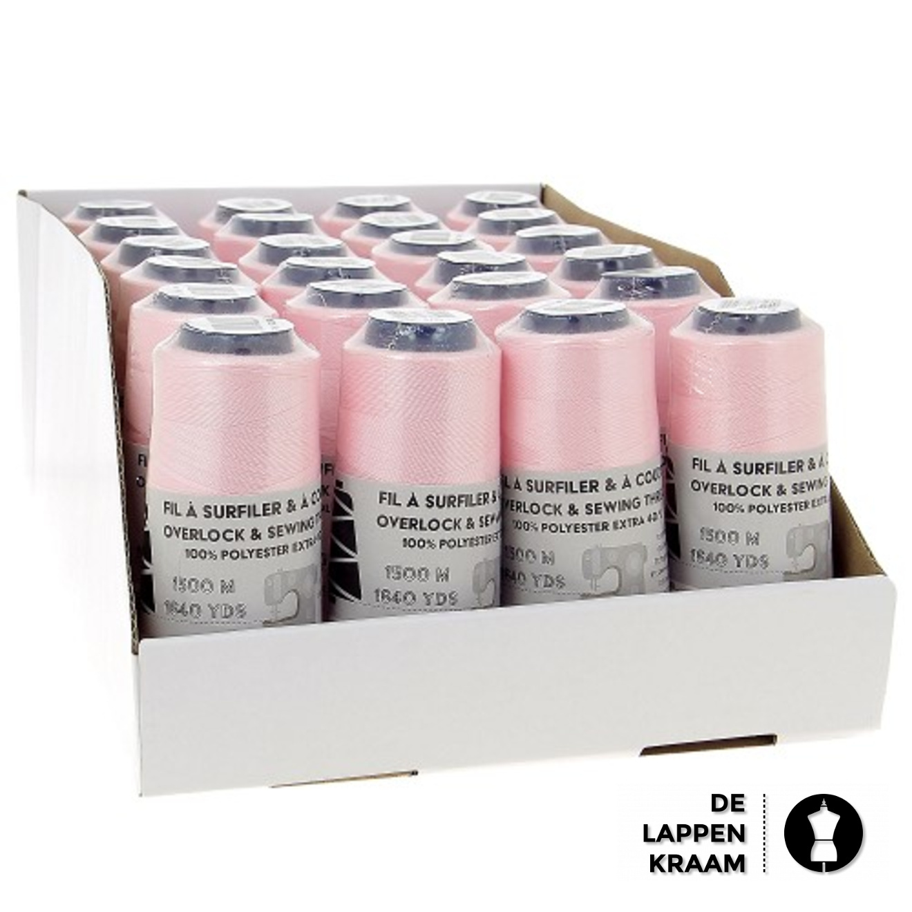 Lockgaren in lichtroze, gemaakt van 100% polyester. 1500 meter per stuk.
