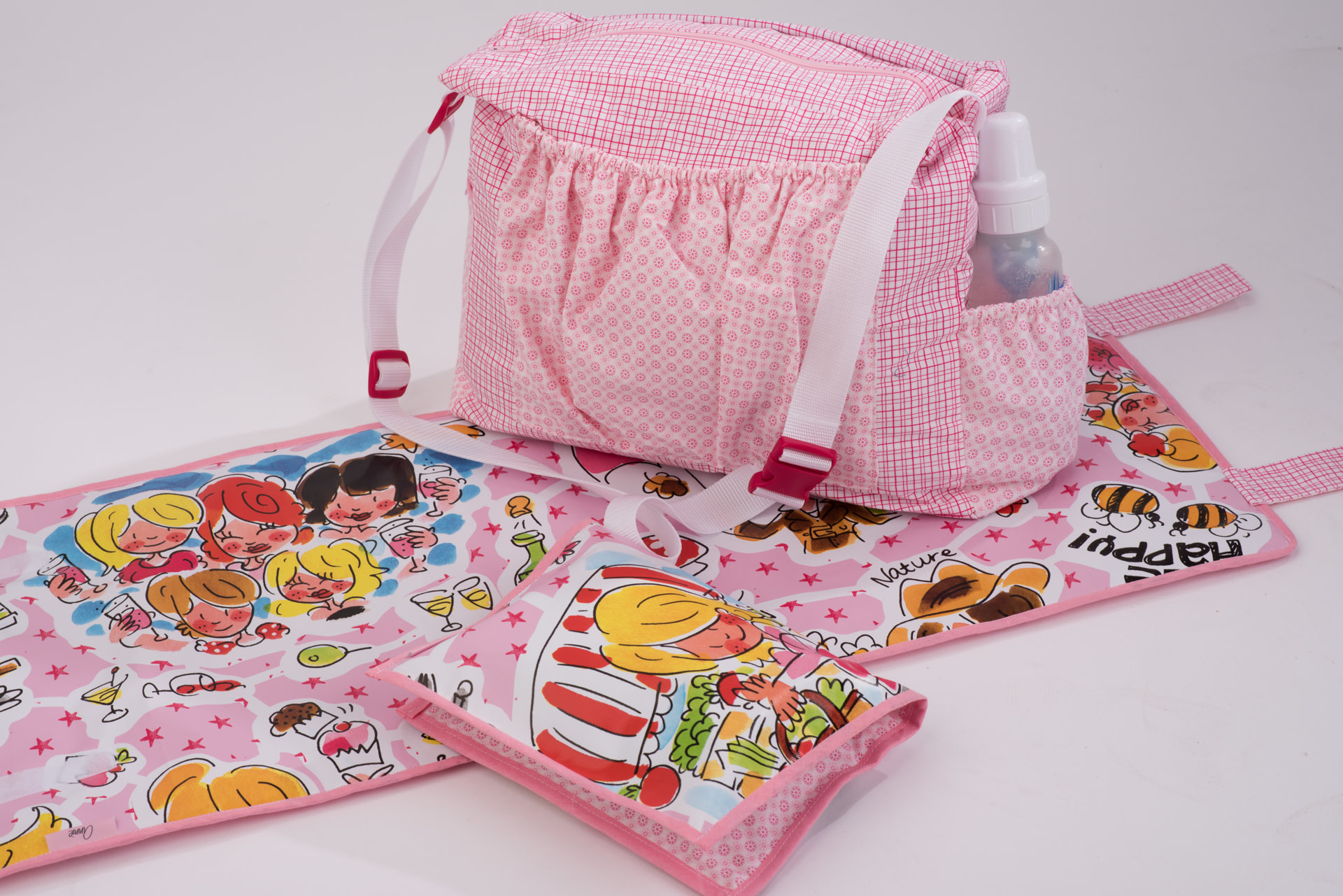Naaipatroon luiertas, inclusief duidelijke werkbeschrijving. Deze luiertas is zeer geschikt om mee te nemen als u een dagje weg gaat. 1 patroon is voorzien van een rechte zak op de voorkant en twee rechte zakjes aan de zijkanten. De andere mogelijkheid is voorzien van eÌeÌn rimpelzakje aan de ene zijkant en eÌeÌn recht zakje aan de andere zijkant. Op de voorzijde van deze tas is een rimpelzak bevestigd.