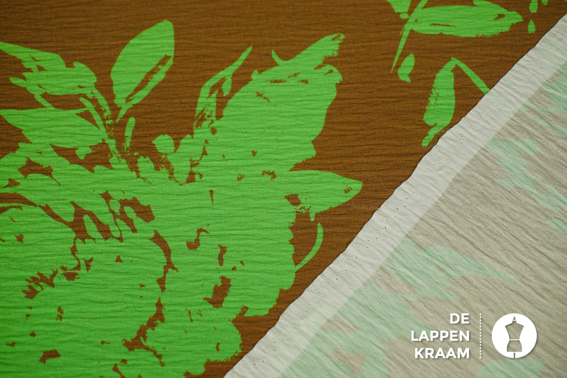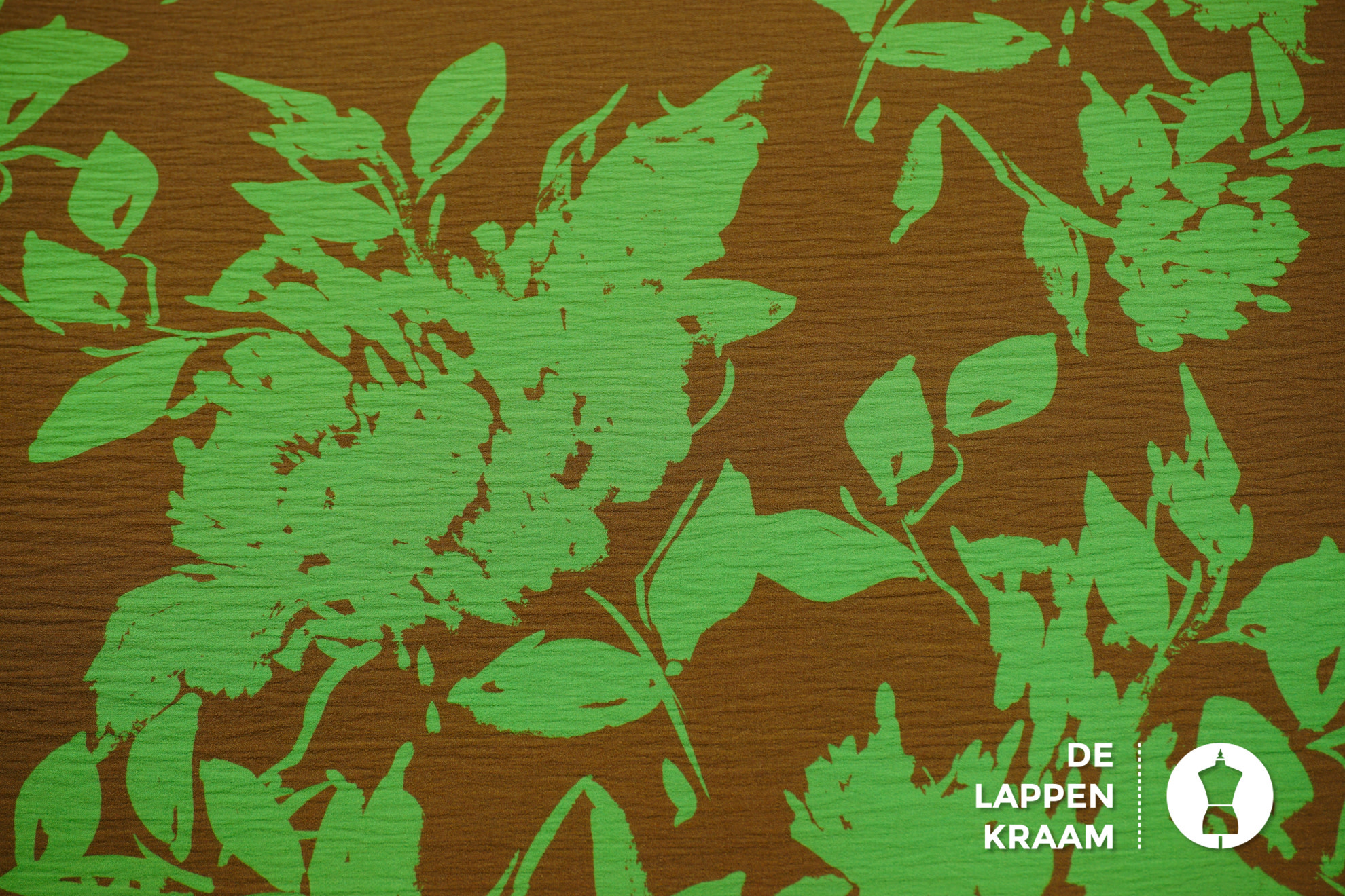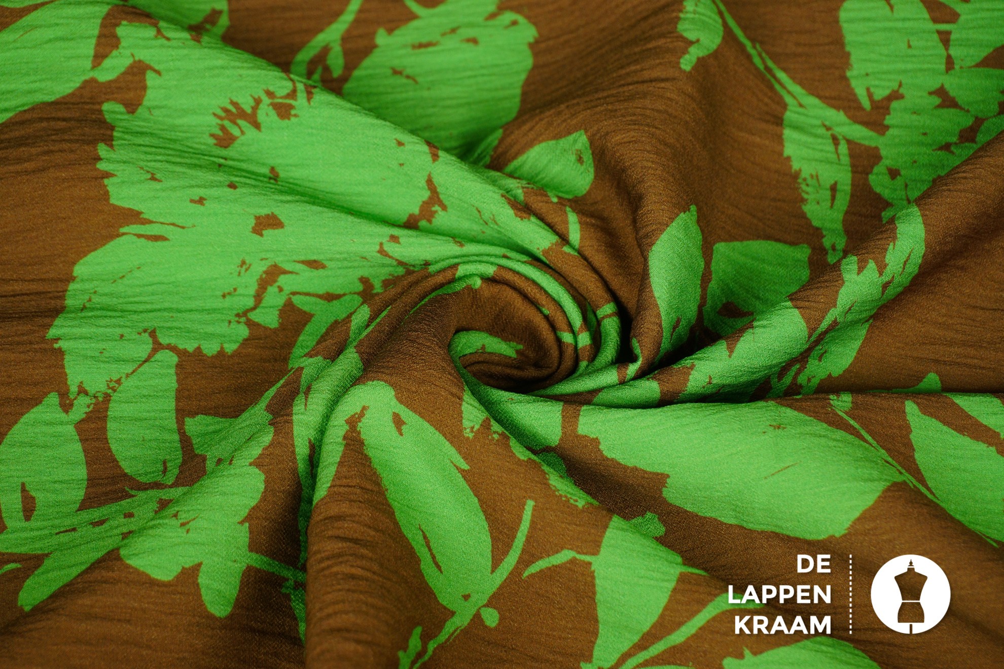 A la Ville Crinkle viscosemix stof bruin met groene bloem