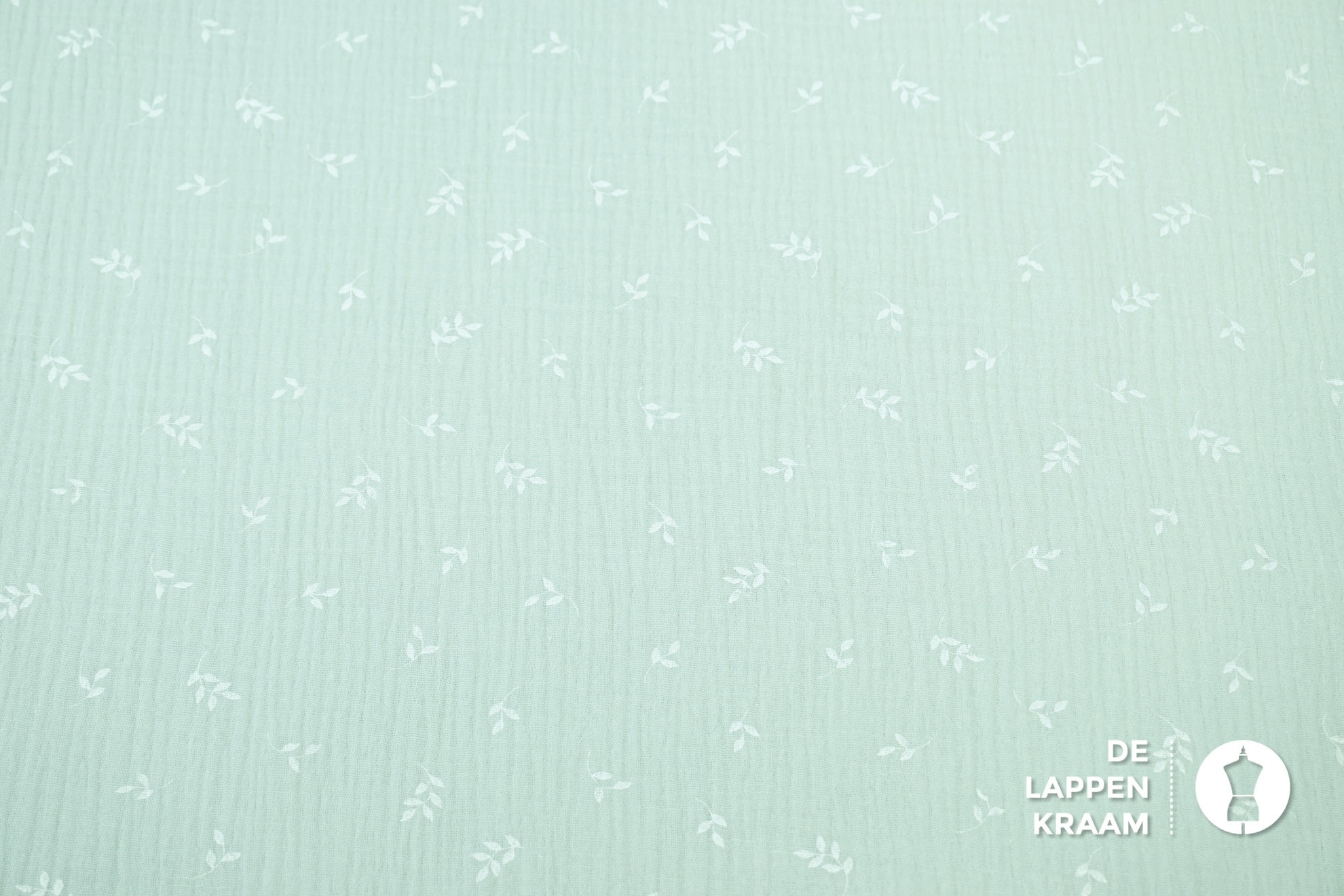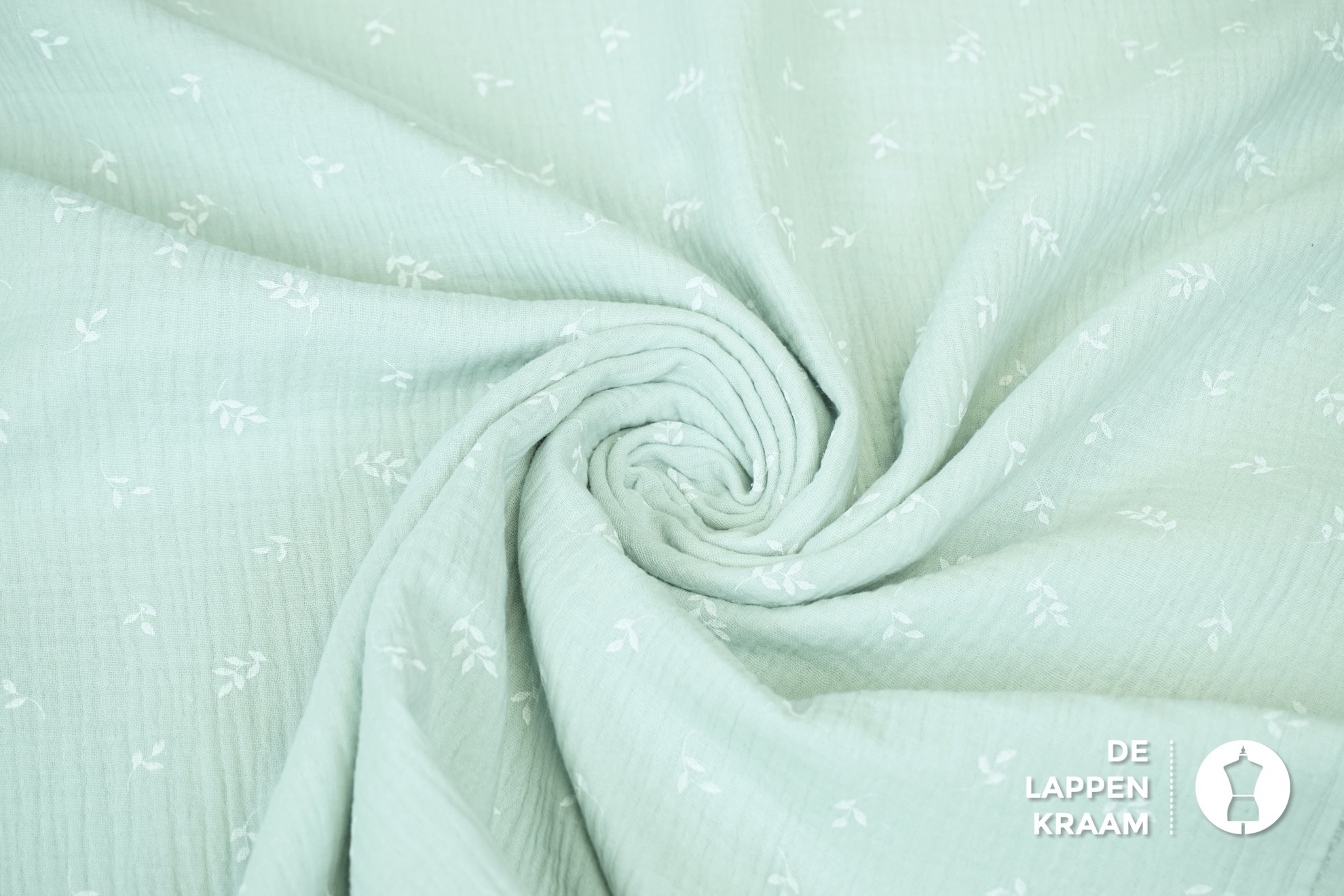 Mousseline, hydrofiel, double gauze... allemaal benamingen voor dezelfde stof. En wat voor een! Zo schattig! Deze versie heeft een print van kleine witte blaadjes.... Lees meer