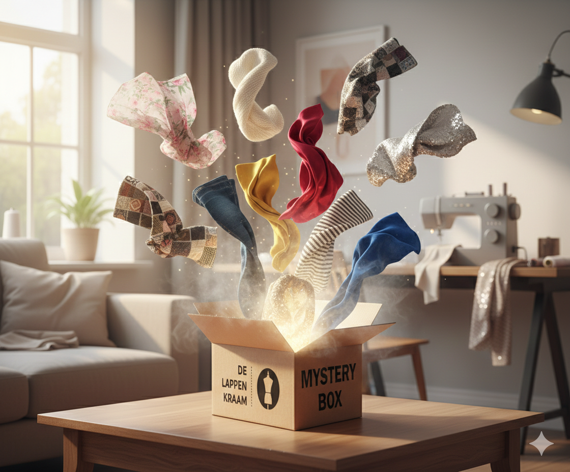 Deze verrassing bevat 10 lappen stof die bij ons echt de laatste stukken van de rol zijn. De afmetingen variëren tussen ongeveer 80 cm en 180 cm. Ideaal voor naaisters die zich graag laten inspireren door onze stoffen en houden van creatief werken voor een aantrekkelijke prijs.