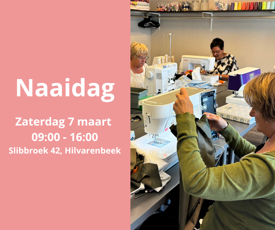 Op zaterdag 7 maart organiseren wij een naaidag, en jij bent van harte welkom! Van 09:00 tot 16:00 kun je in ons atelier terecht voor een gezellige dag. Hier heb je de mogelijkheid om aan je eigen project te werken, andere naailiefhebbers te ontmoeten en samen een creatieve dag te beleven.