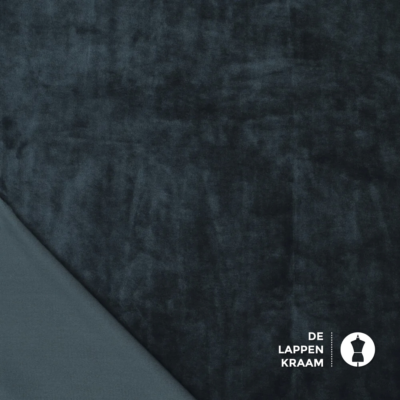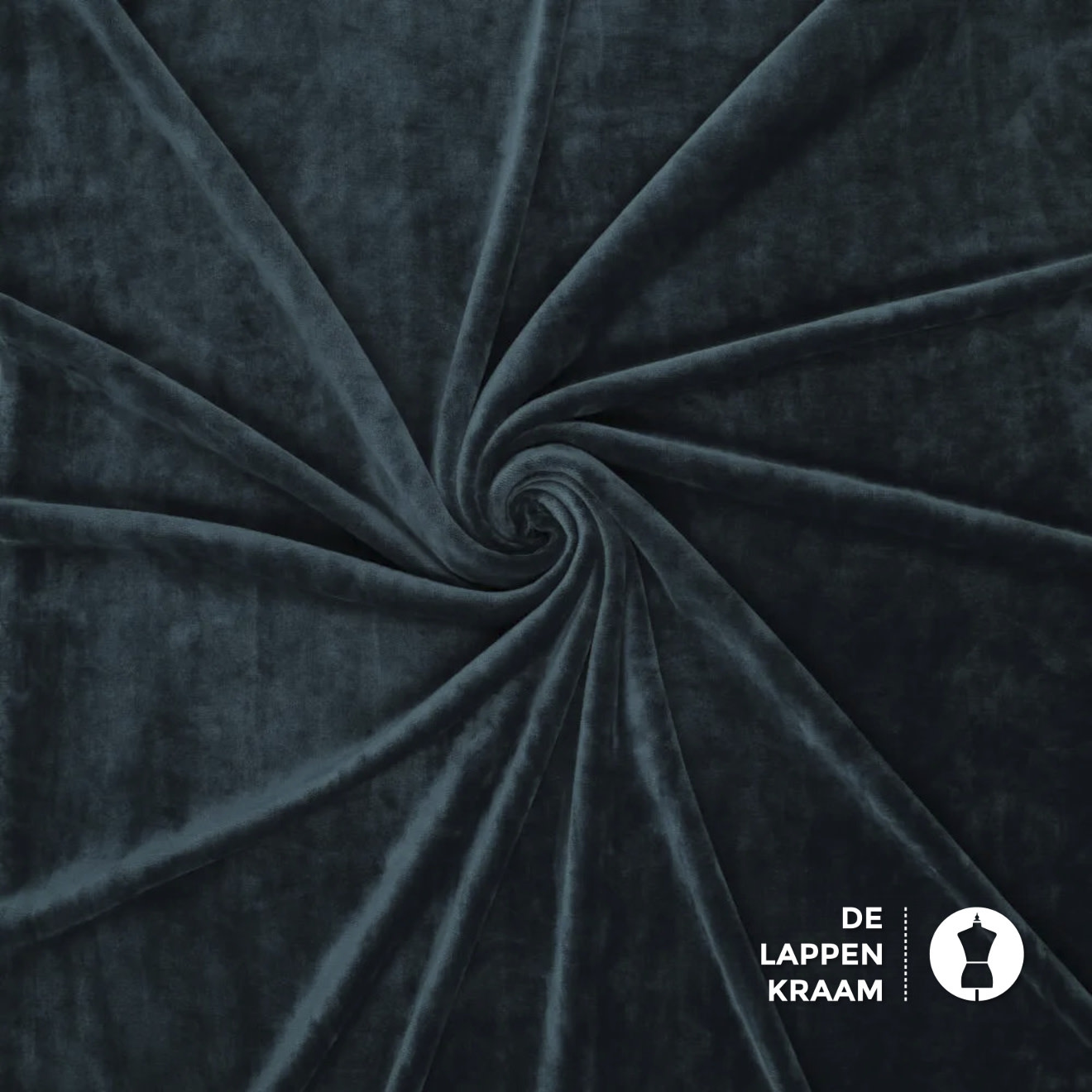 Heerlijk zachte velvet fluweel met stretch in de kleur petrol. Heerlijk voor een sweater, joggingbroek, huispak of een kledingstuk voor je kleintje!