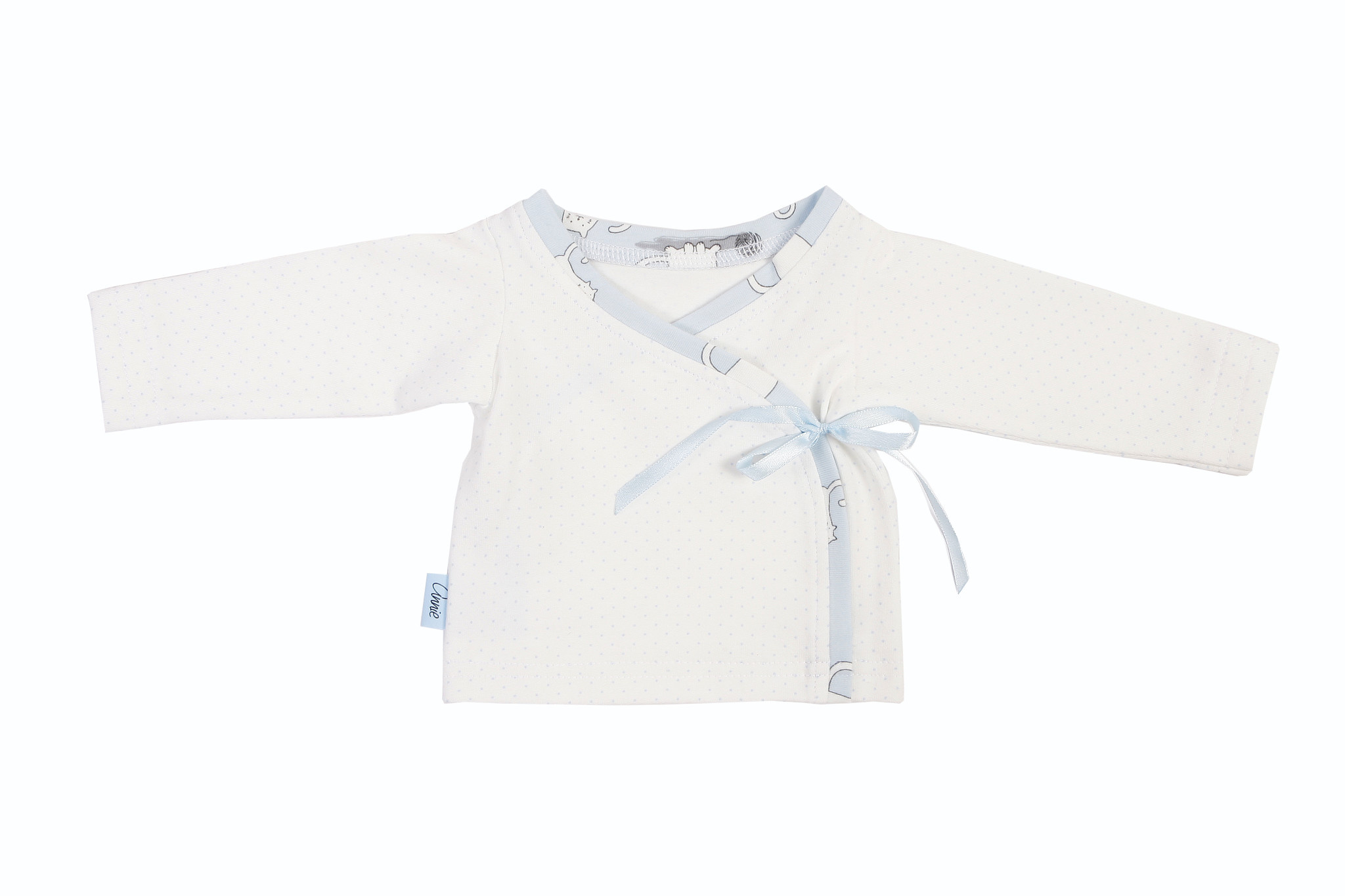 Naaipatroon overslagtrui, inclusief duidelijke werkbeschrijving. Dit patroon loopt van maat 50 t/m maat 74.
