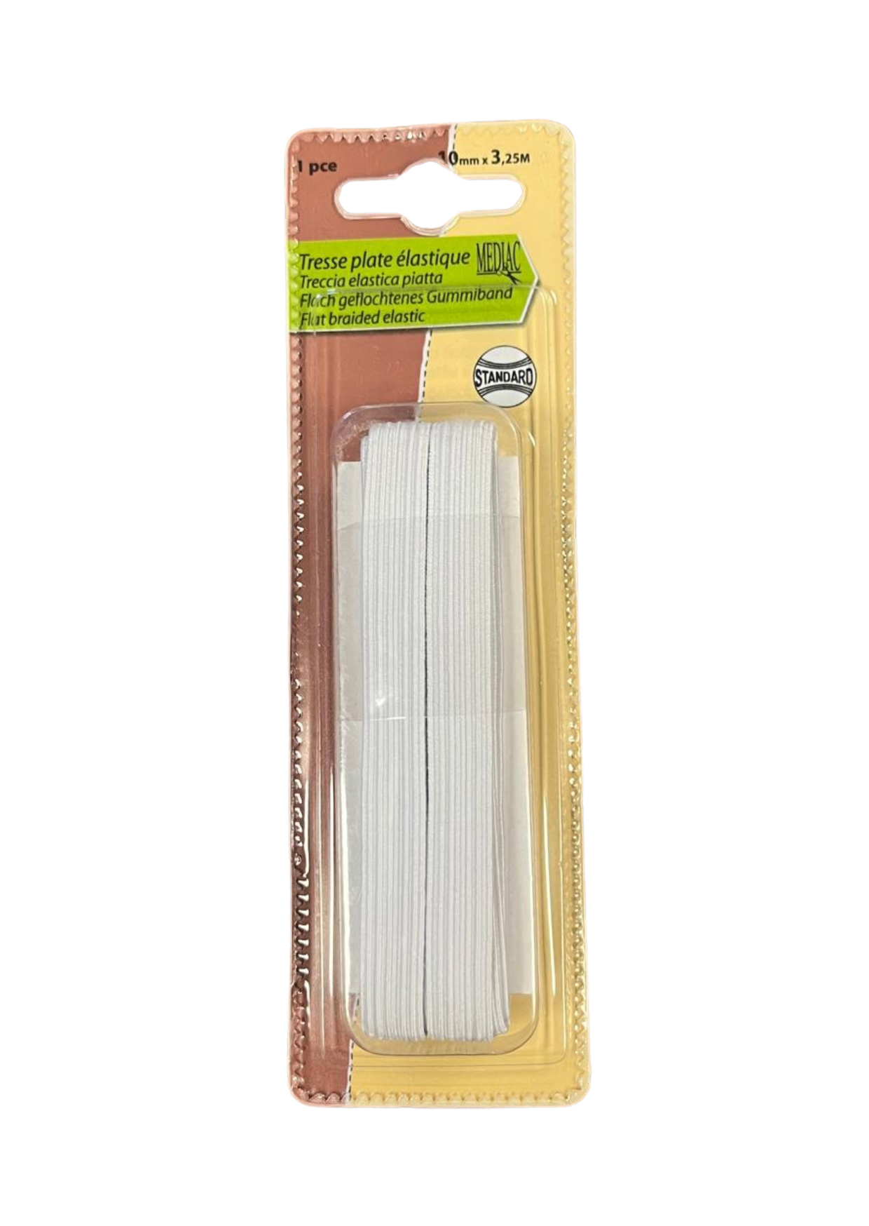 1 pakje elastiek bevat 3,25 meter elastiek van 10mm breed.
