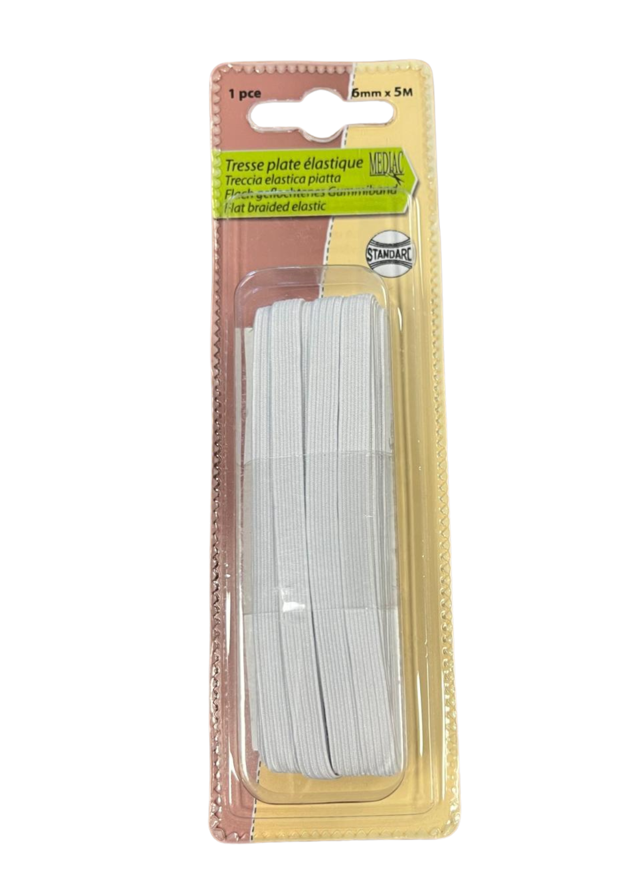 1 pakje elastiek bevat 5 meter elastiek van 6mm breed.