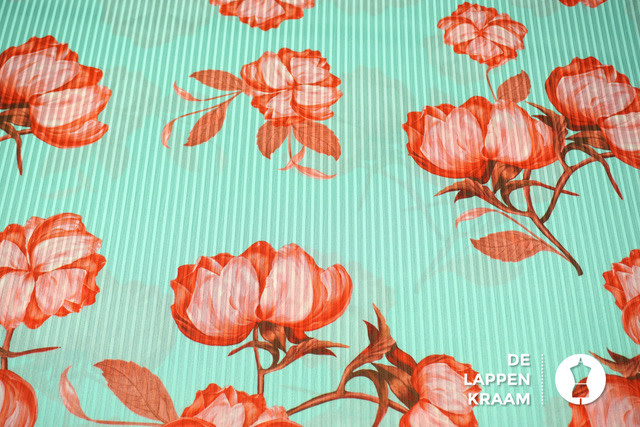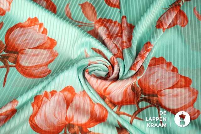 A la Ville Polyester in mint met ingeweven streep en roze bloemdessin