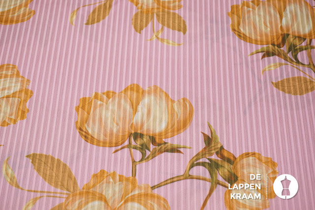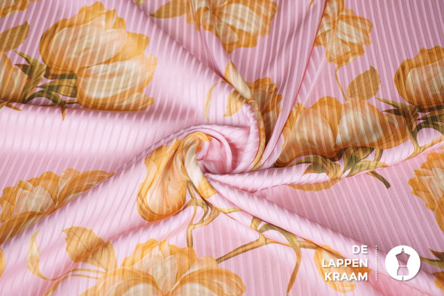 A la Ville Polyester in roze met ingeweven streep en goudgeel bloemdessin