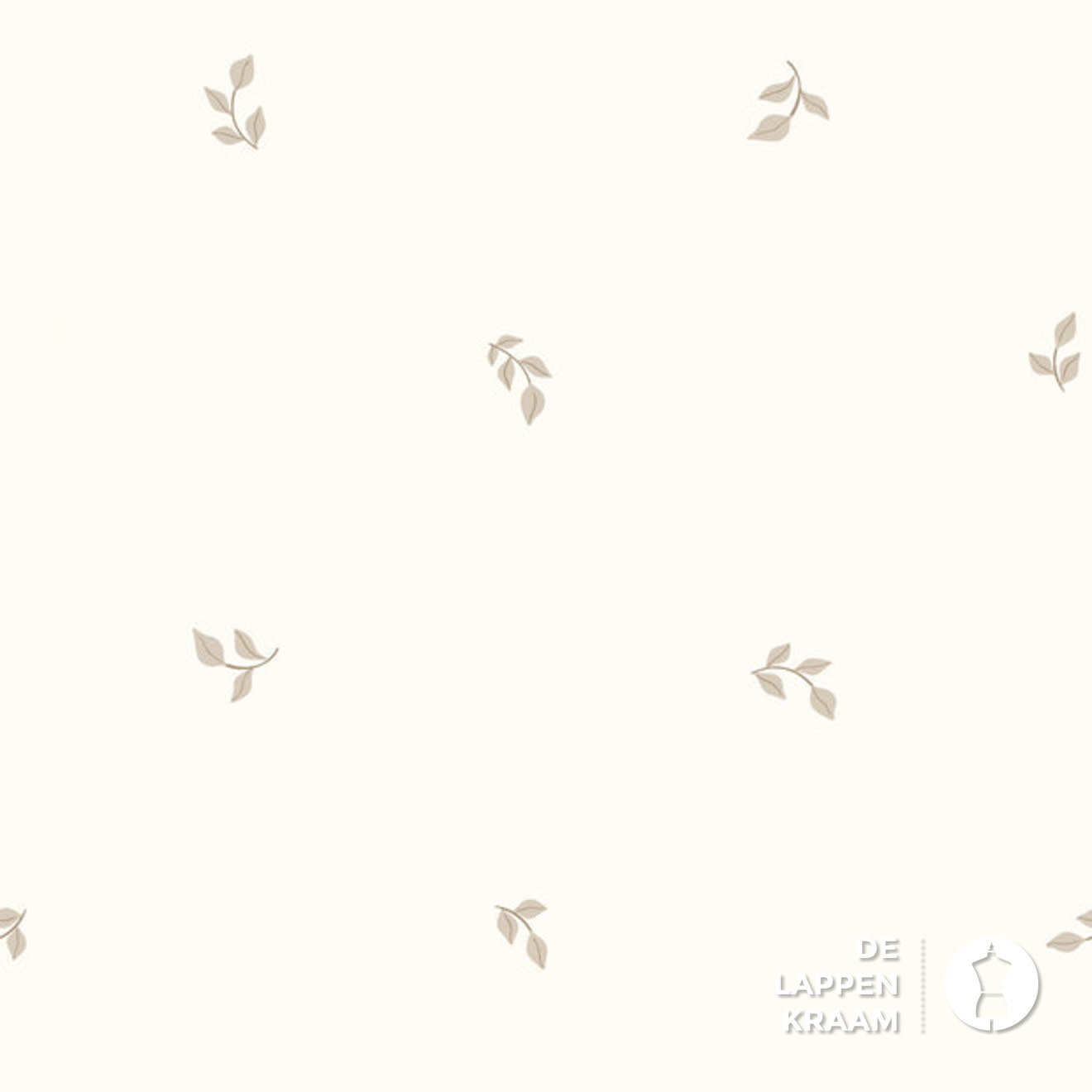 Popeline stof gebroken wit met beige blaadjes