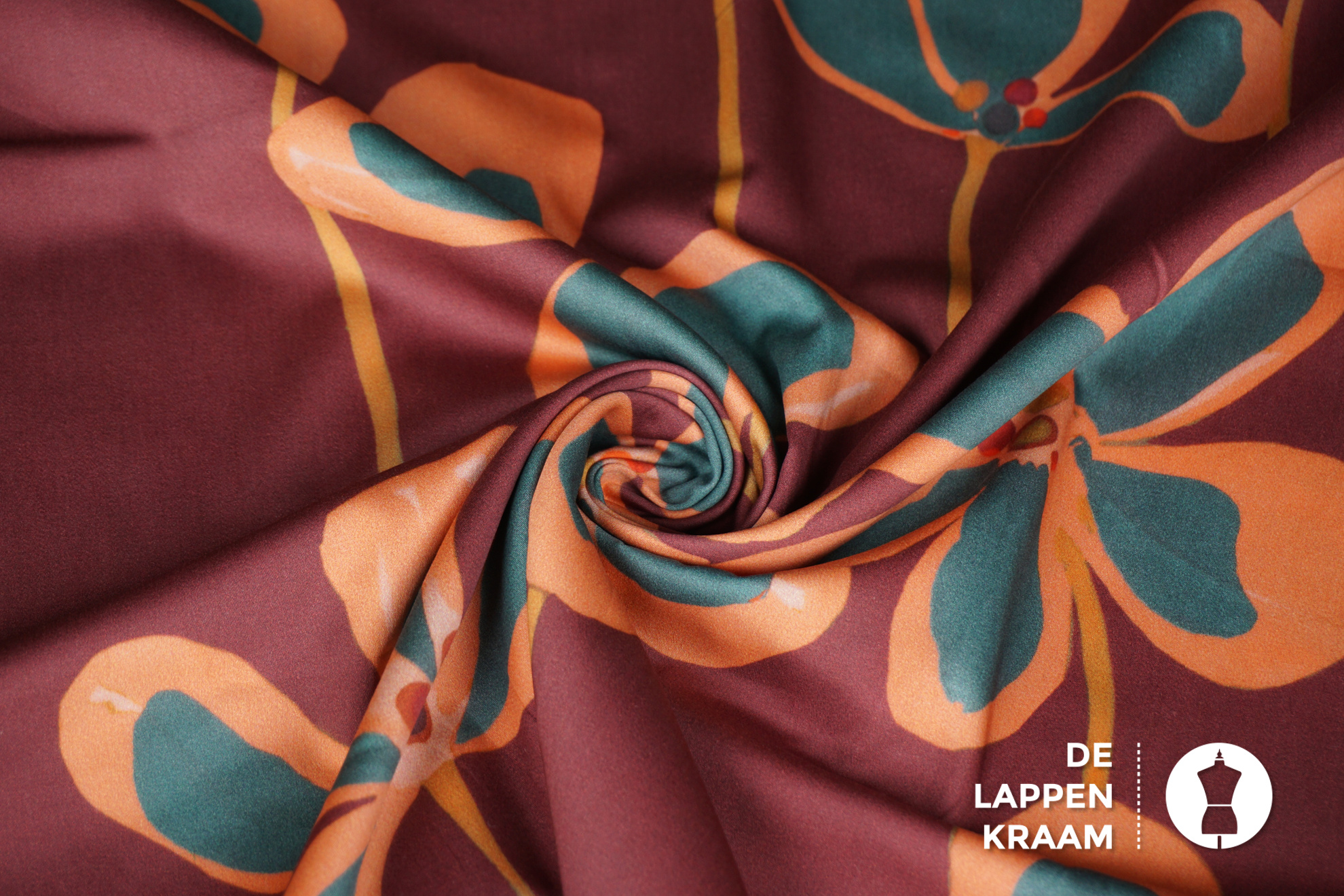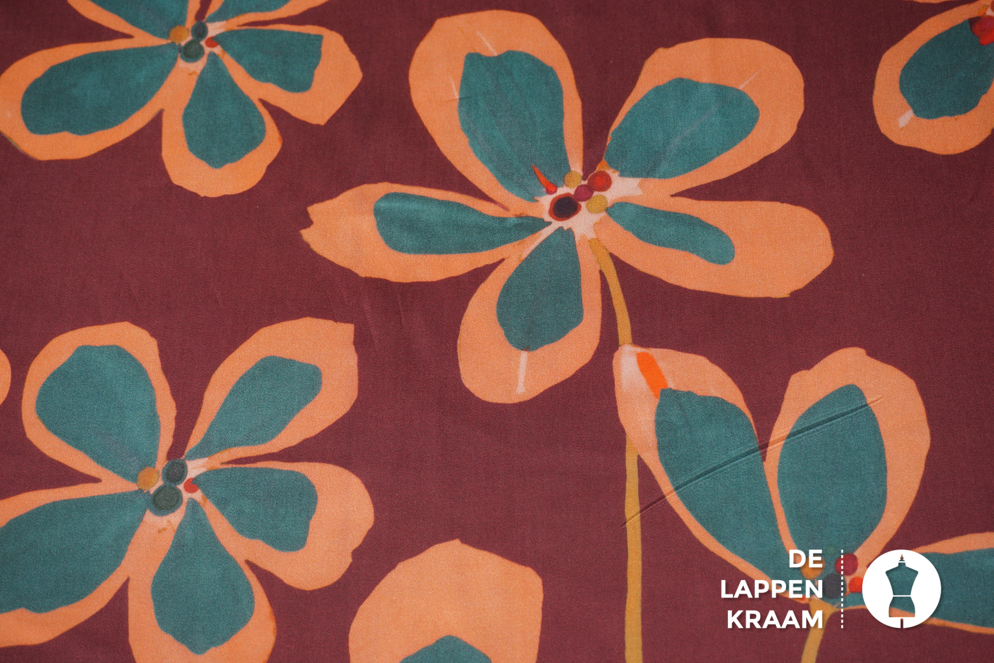 A la Ville Popeline stof steenrood met groot bloemdessin