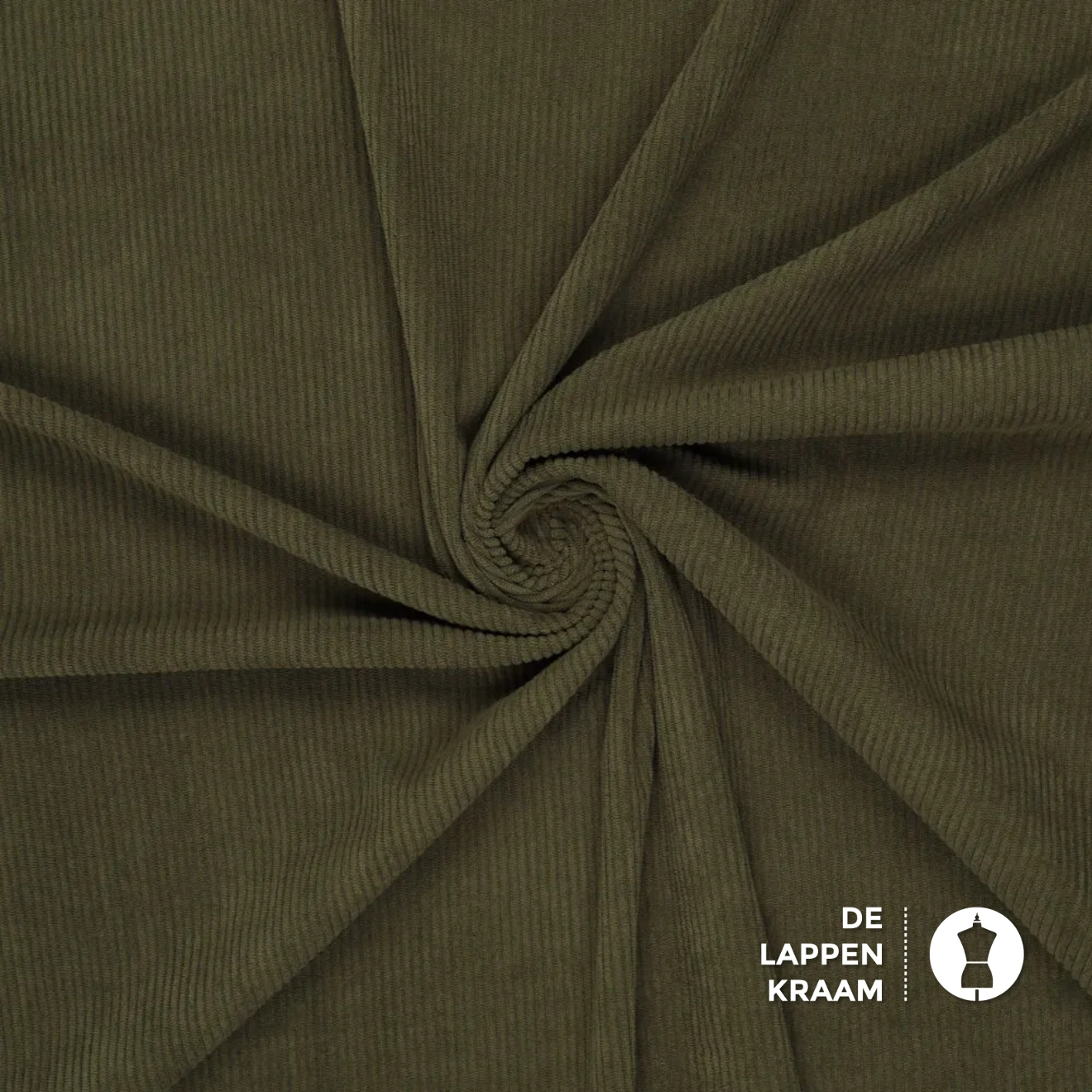 Soepele ribstof legergroen met een rib van een halve centimeter breed. Leuk voor een broek, jasje of wat denk je van een toffe tas? De stof is gebreid en daardoor licht rekbaar.... Lees meer