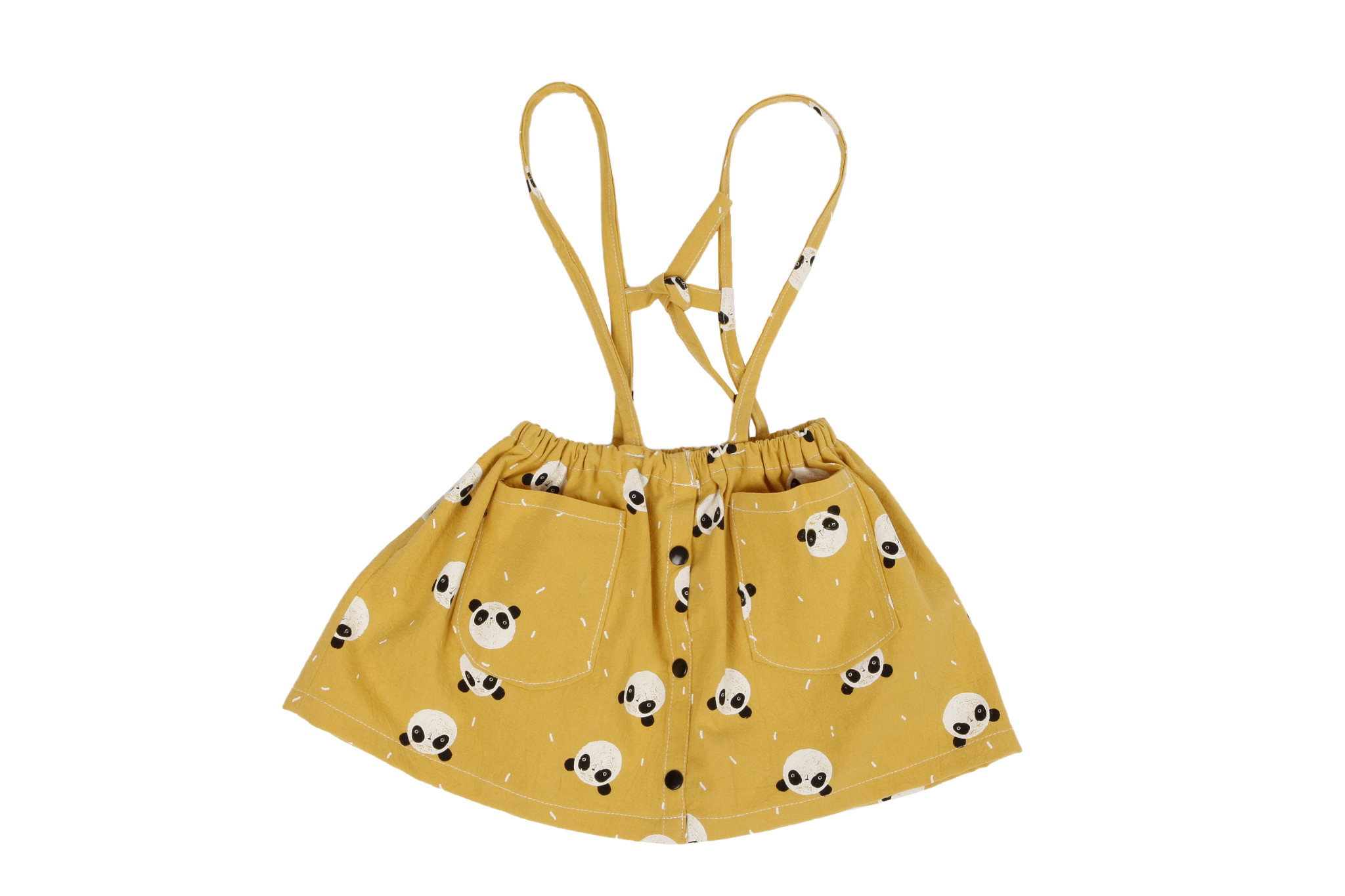 Naaipatroon rokje met bretels, inclusief duidelijke werkbeschrijving. Dit rokje is gemaakt van katoen, maar kan ook gemaakt worden van tricotstof. Door het elastiek kan het gemakkelijk over het hoofdje worden aangetrokken. De bretels geven het rokje een speels effect.