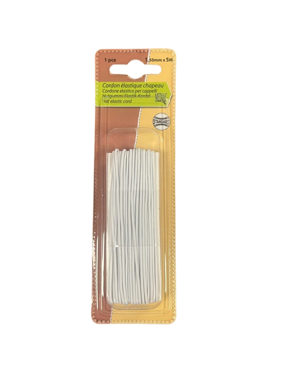 1 pakje elastiek bevat 5 meter elastiek van 1,5mm breed.