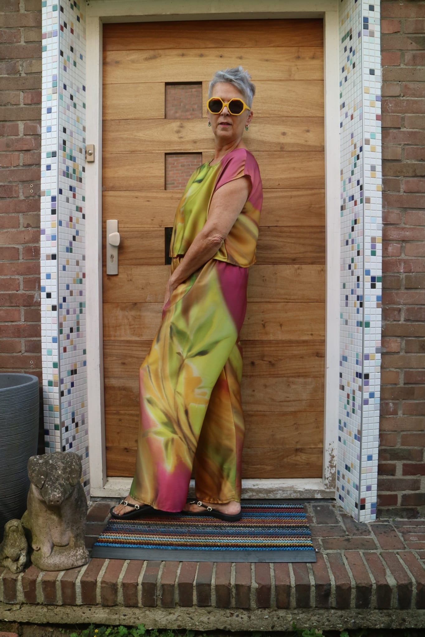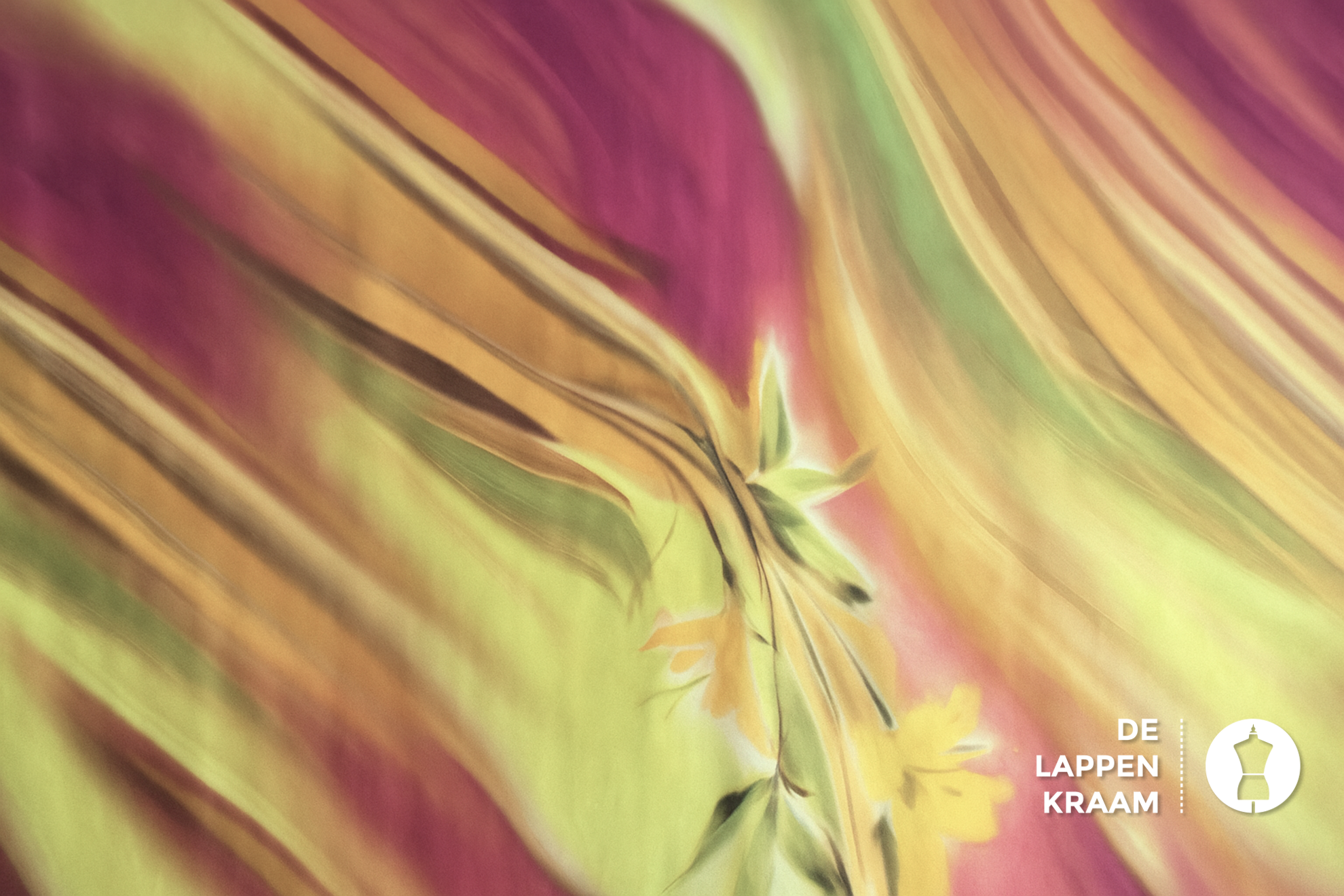 De bloem is ongeveer 60 cm hoog en 45cm breed. De bloem komt ongeveer om de 160 cm terug. Om de bloem goed te kunnen gebruiken adviseren we je ruim te bestellen. Onze influencers ontvingen allemaal 3 meter en wisten er alledrie een prachtige creatie mee te fabriceren.