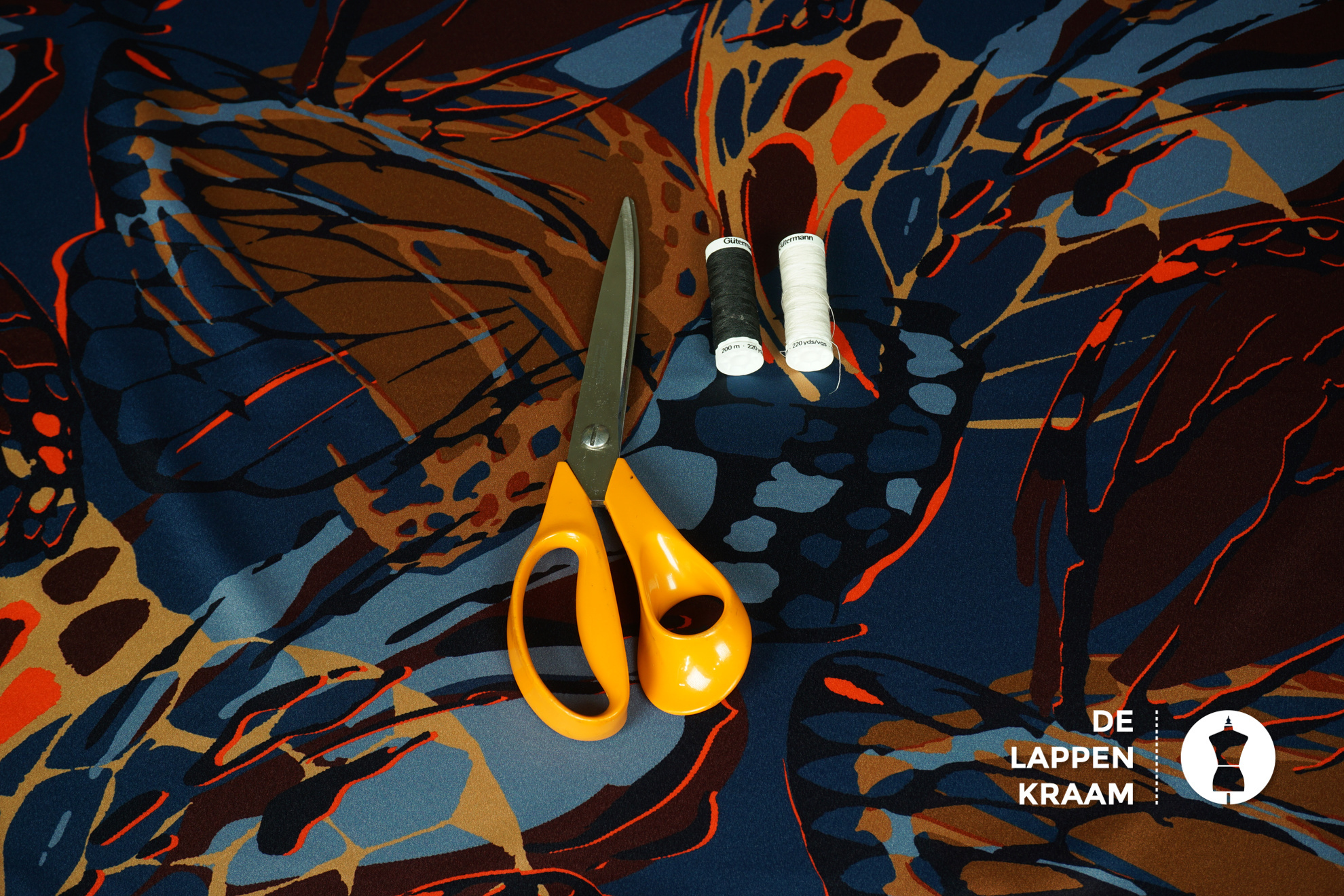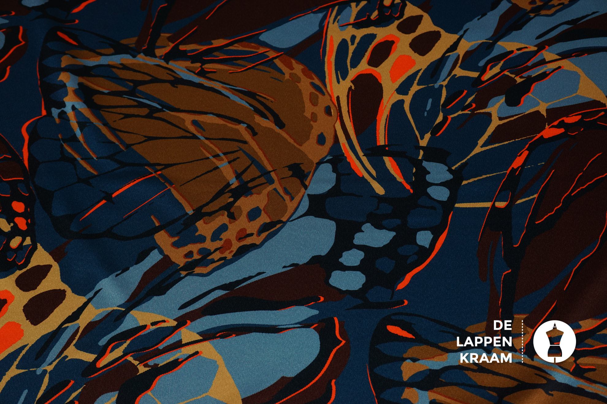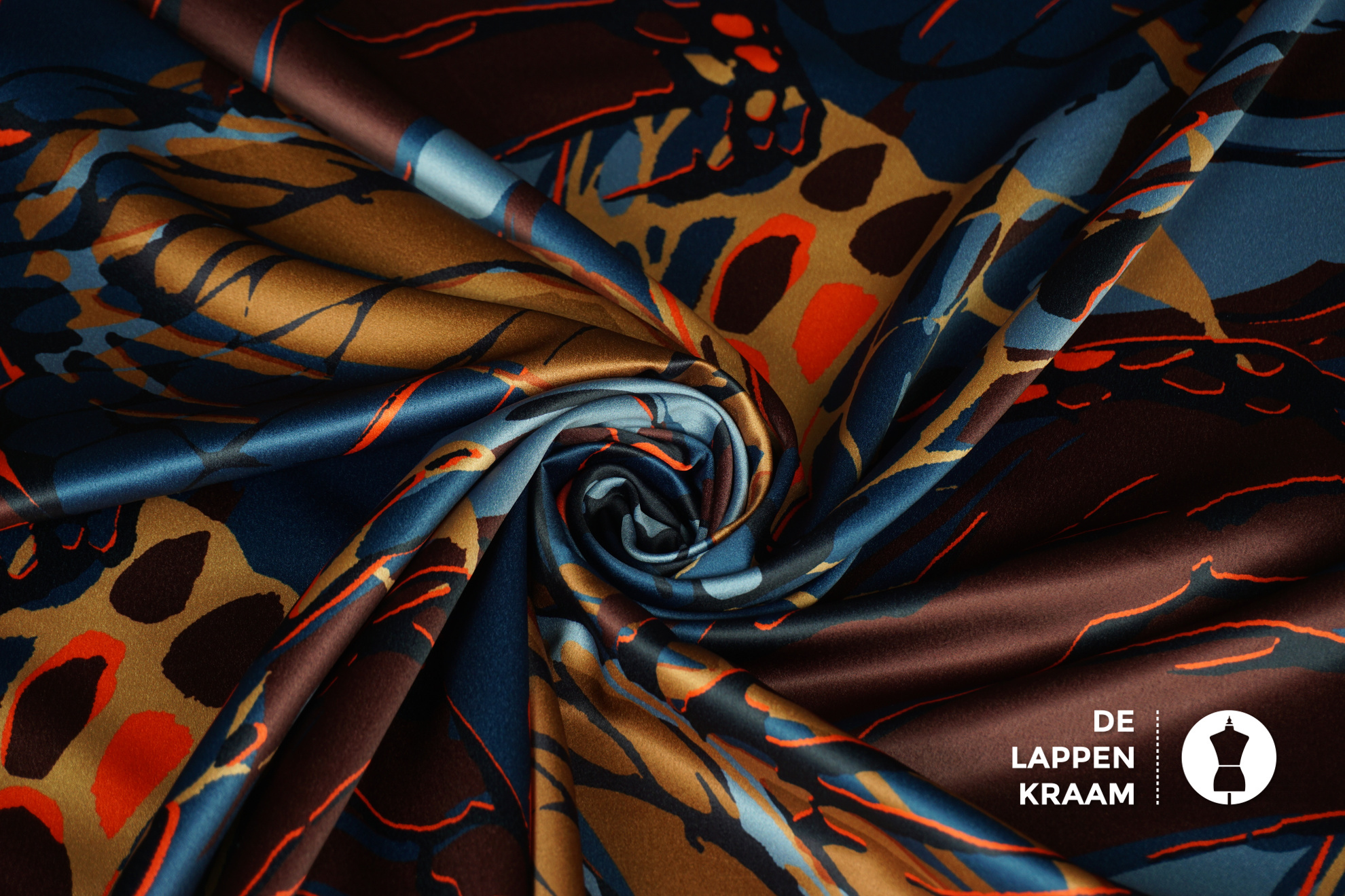 A la Ville Satijn stof met bruine en blauwe vlinders