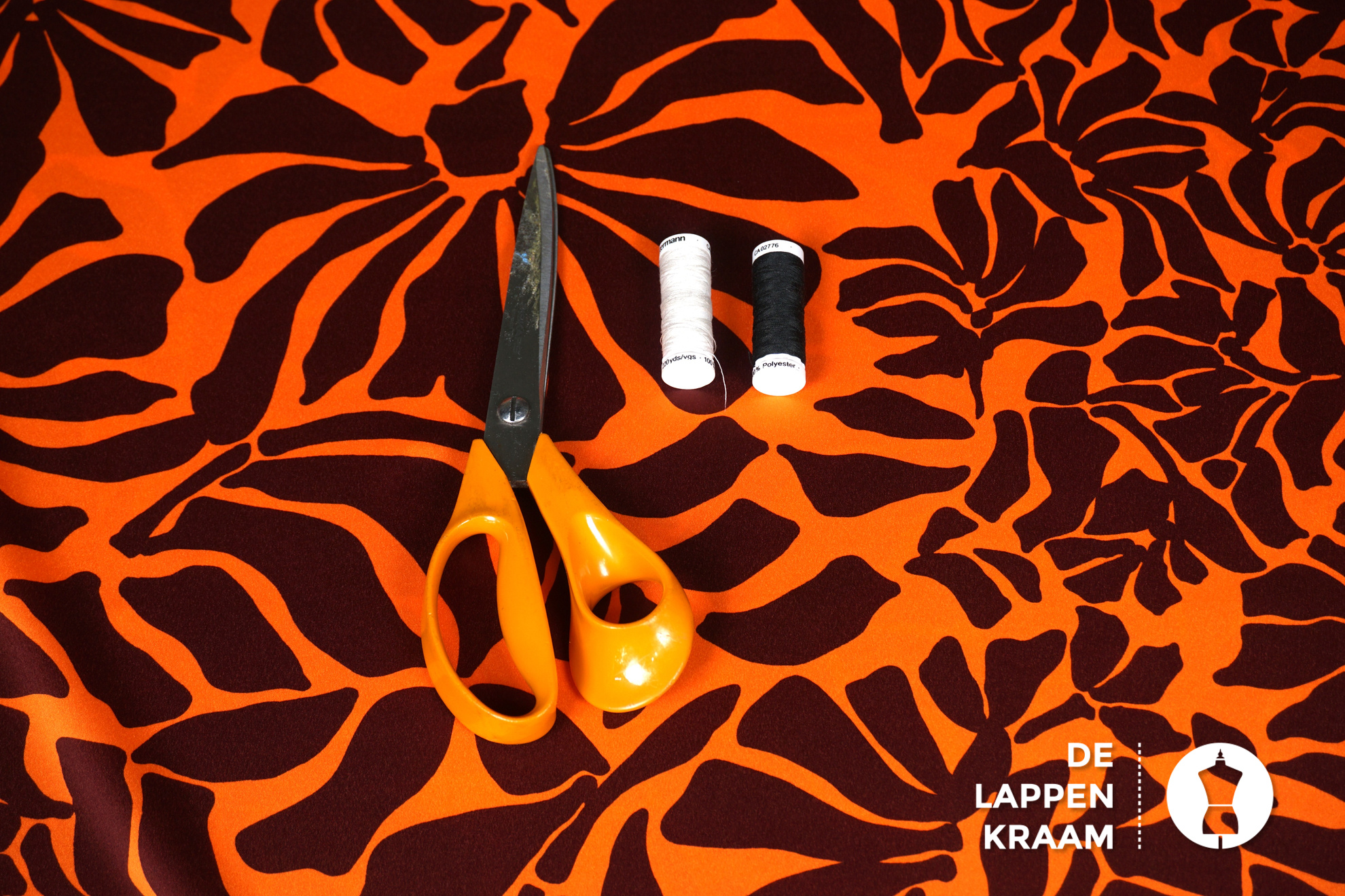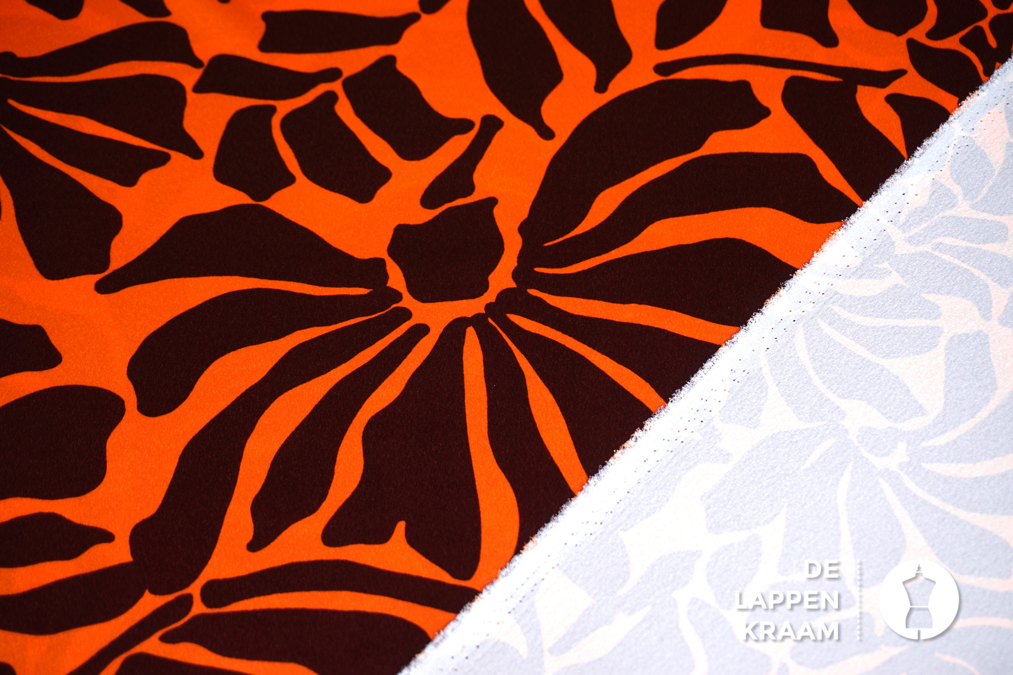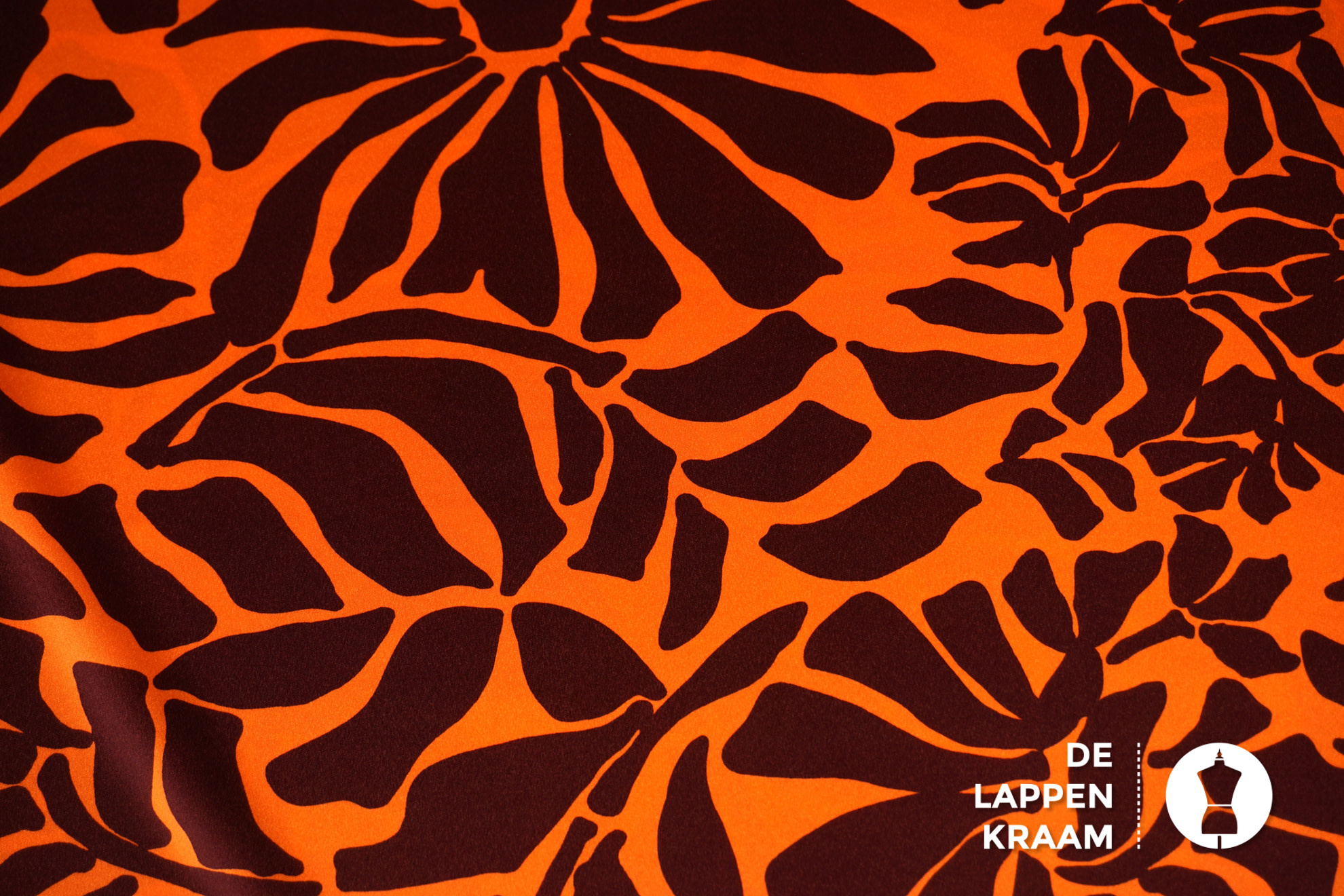 A la Ville Satijn stof oranje met abstracte bruine bladeren