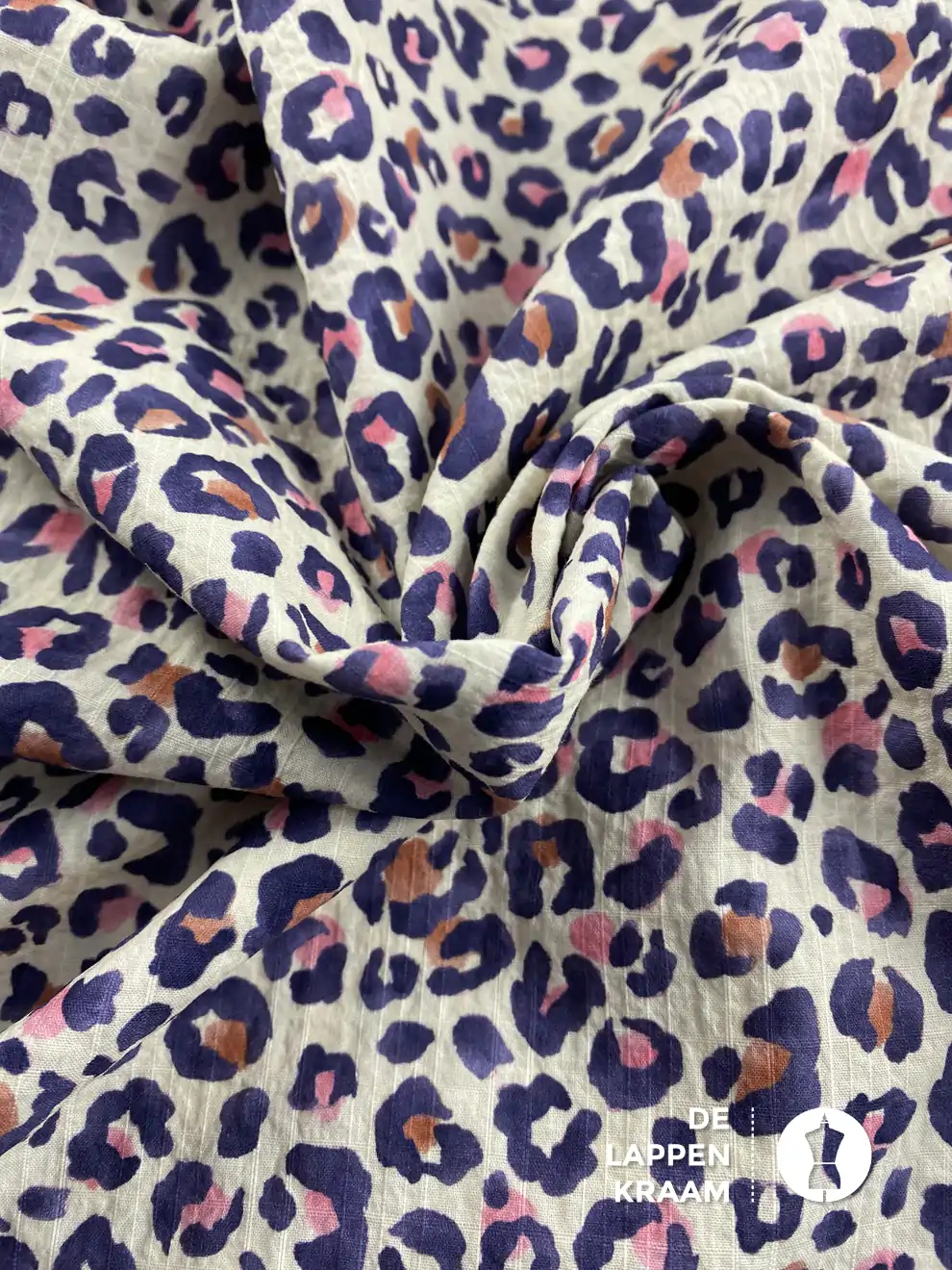 Seersucker met kleine panterprint ecru met paars