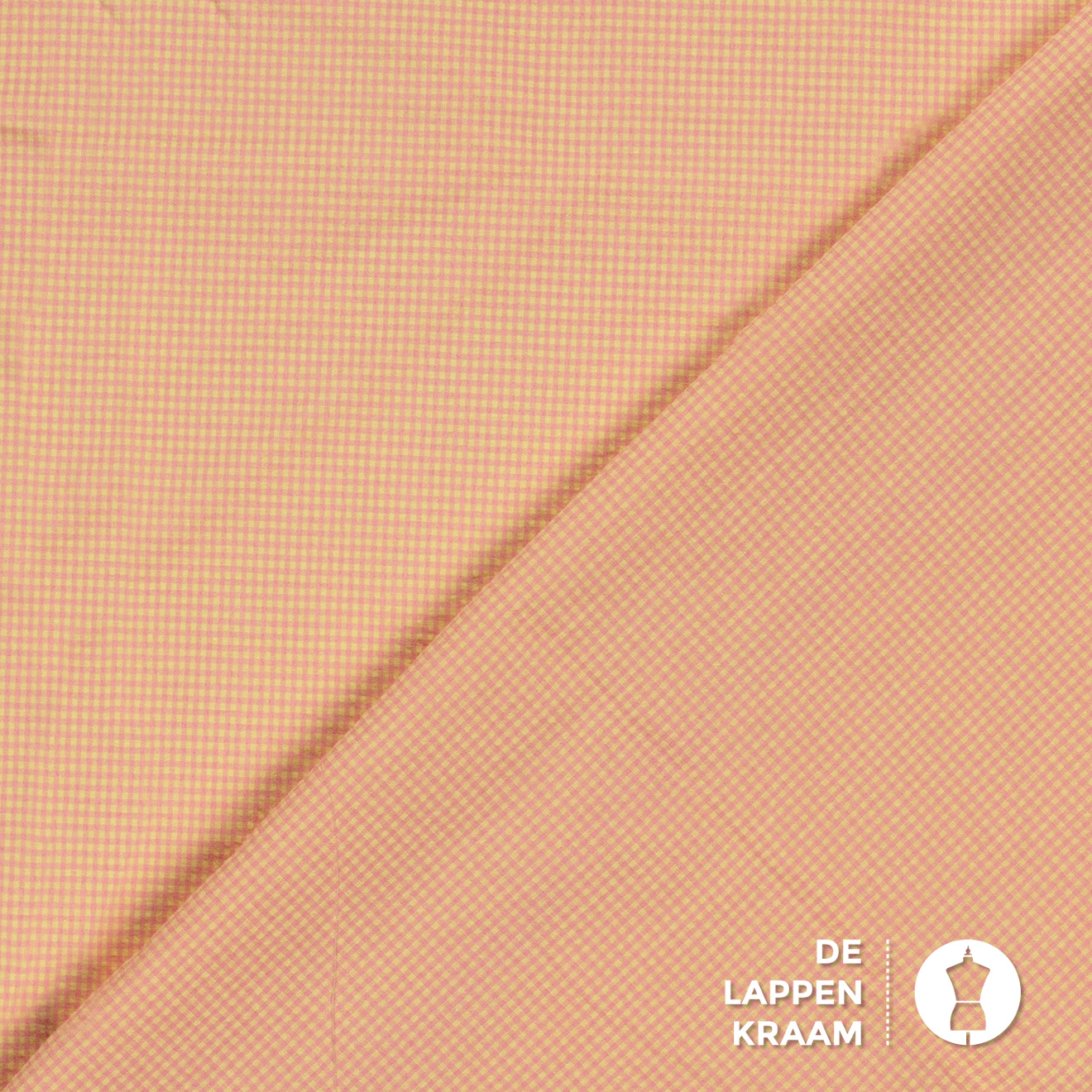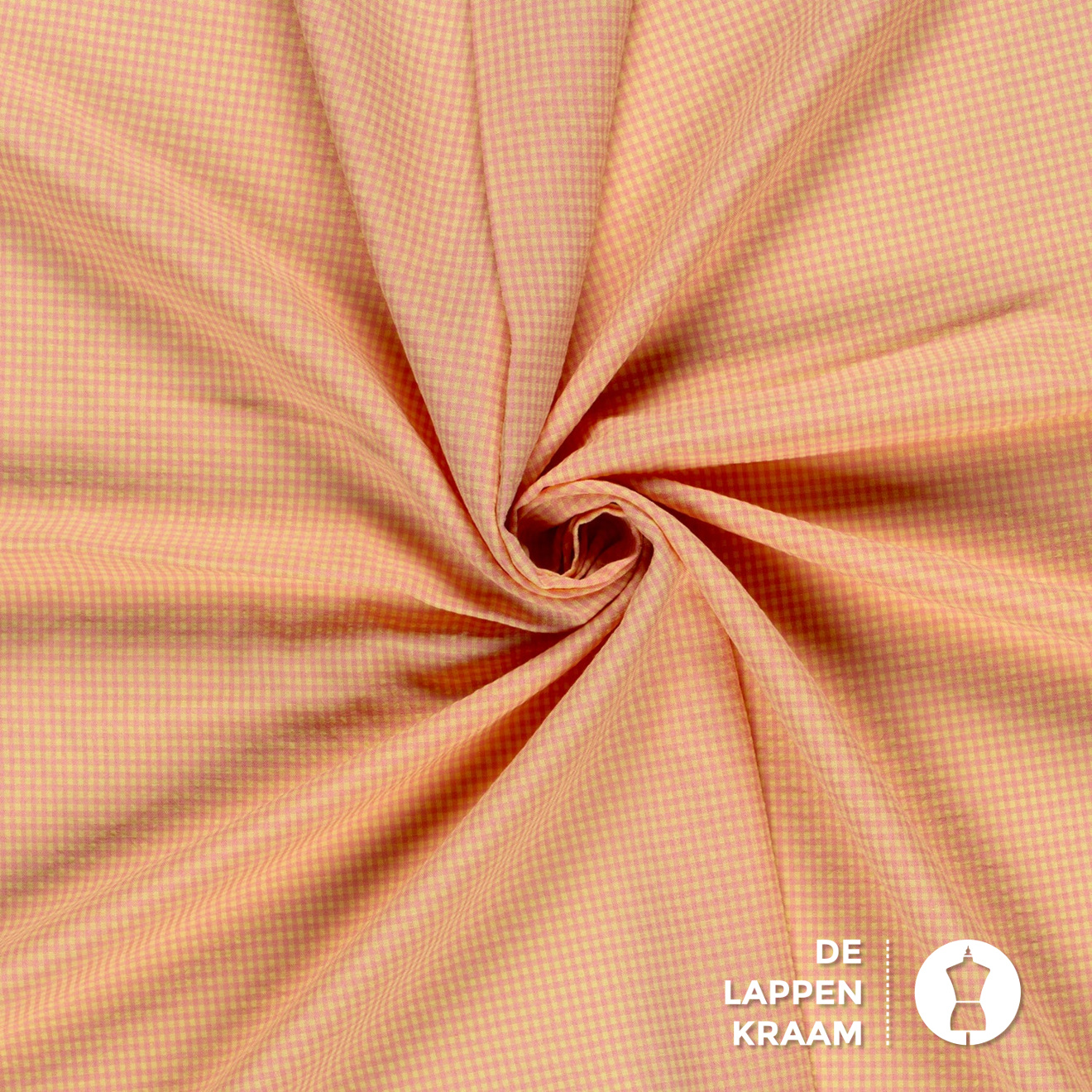 Seersucker stof miniruitje roze geel