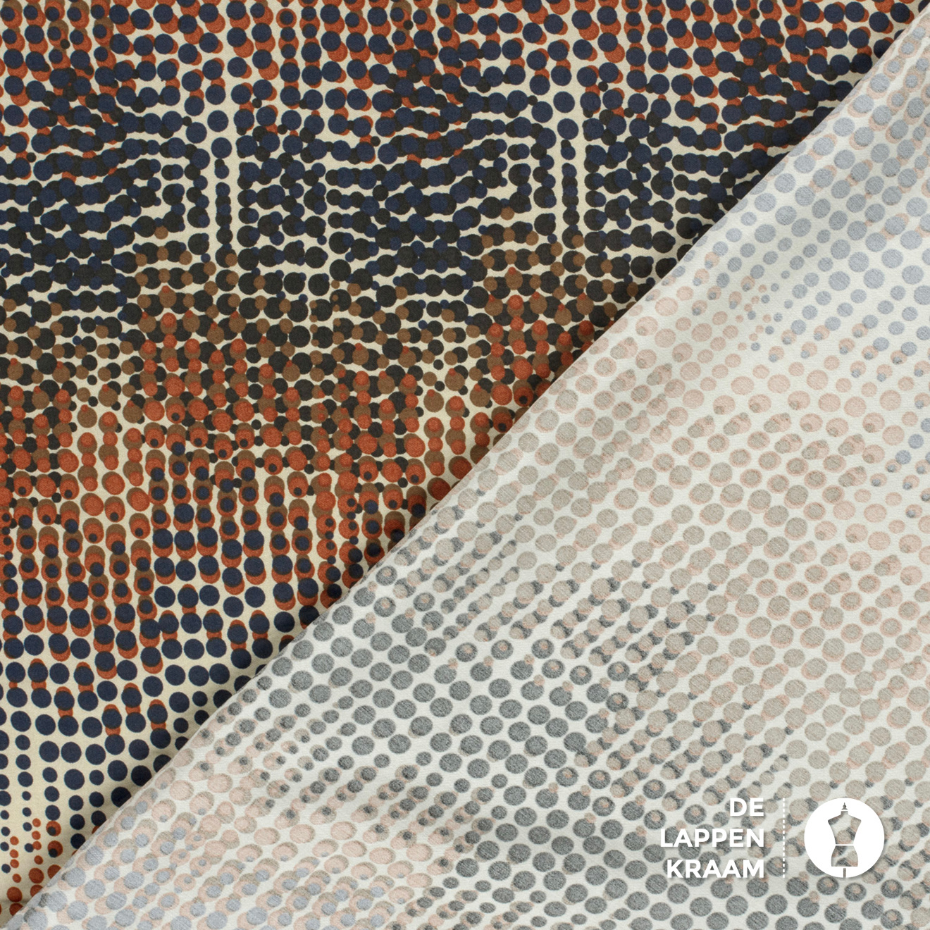 Soepel geweven stof met stippenpatroon beige ondergrond