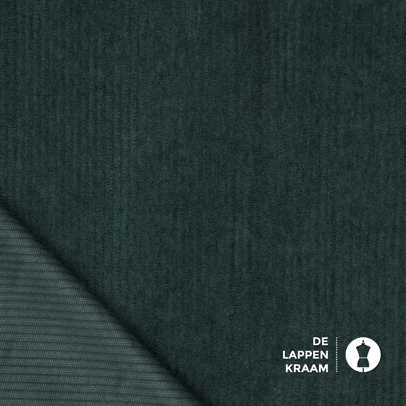 Soepele ribstof donkergroen met een rib van een halve centimeter breed. Leuk voor een broek, jasje of wat denk je van een toffe tas? De stof is gebreid en daardoor licht rekbaar... Lees meer