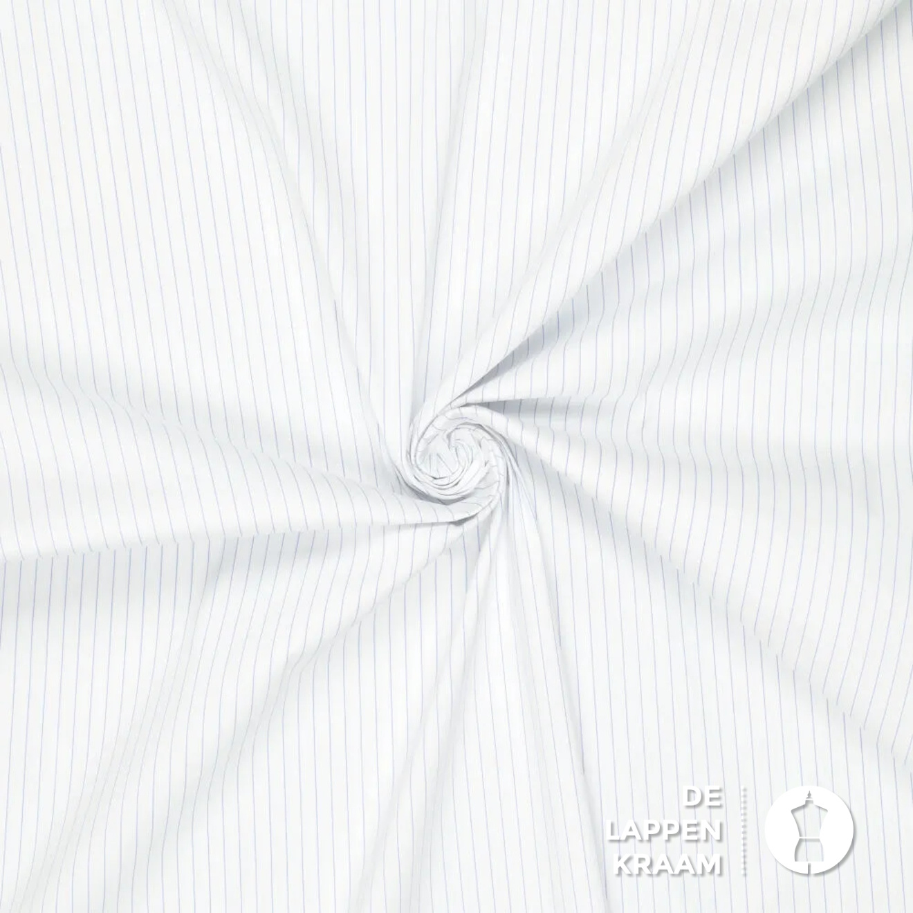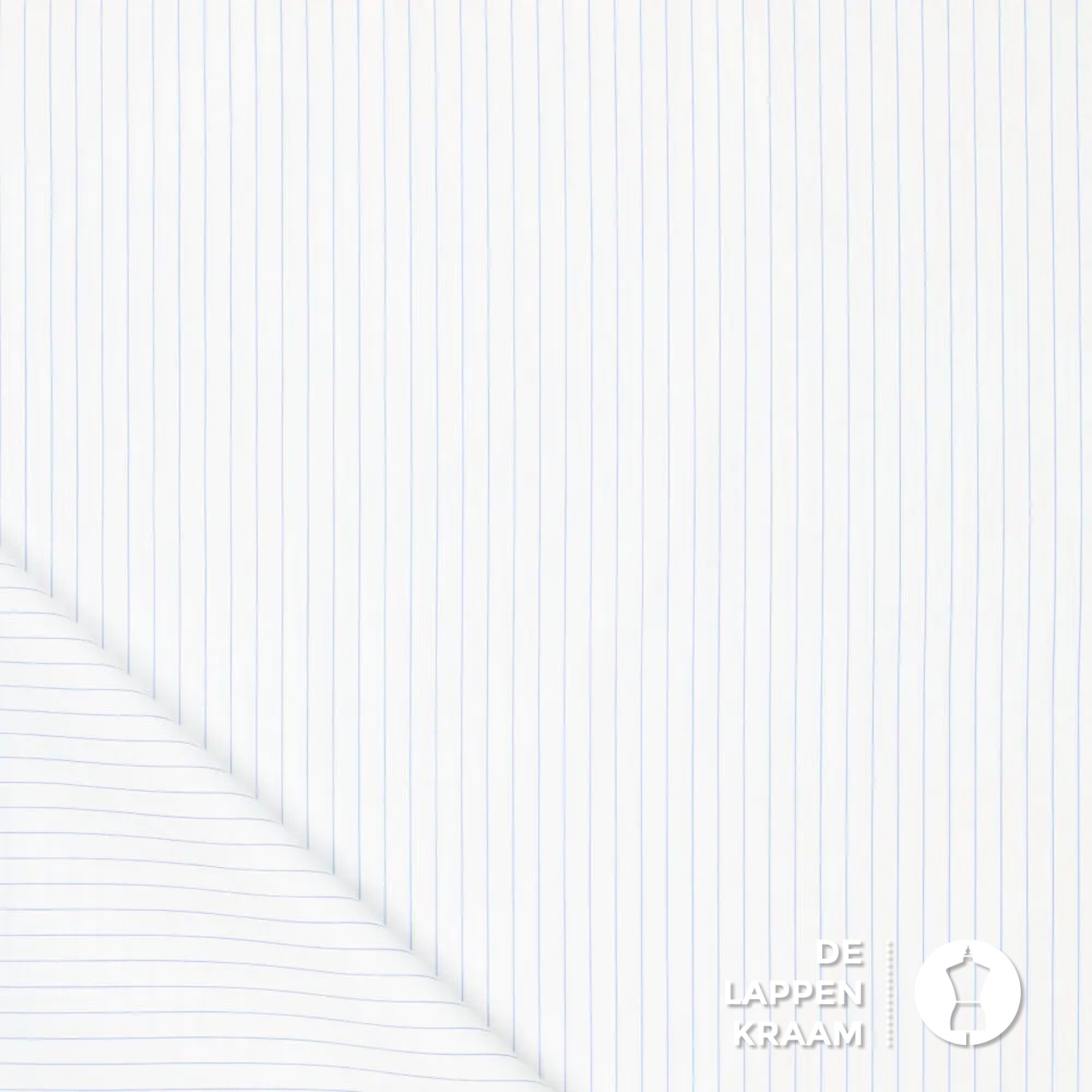 Popeline van katoen met een klein beetje elastaan, waardoor de stof een lichte rek heeft in de breedte. De ondergrond is wit en er lopen dunne blauwe streepjes over de lengte van de stof.... Lees meer