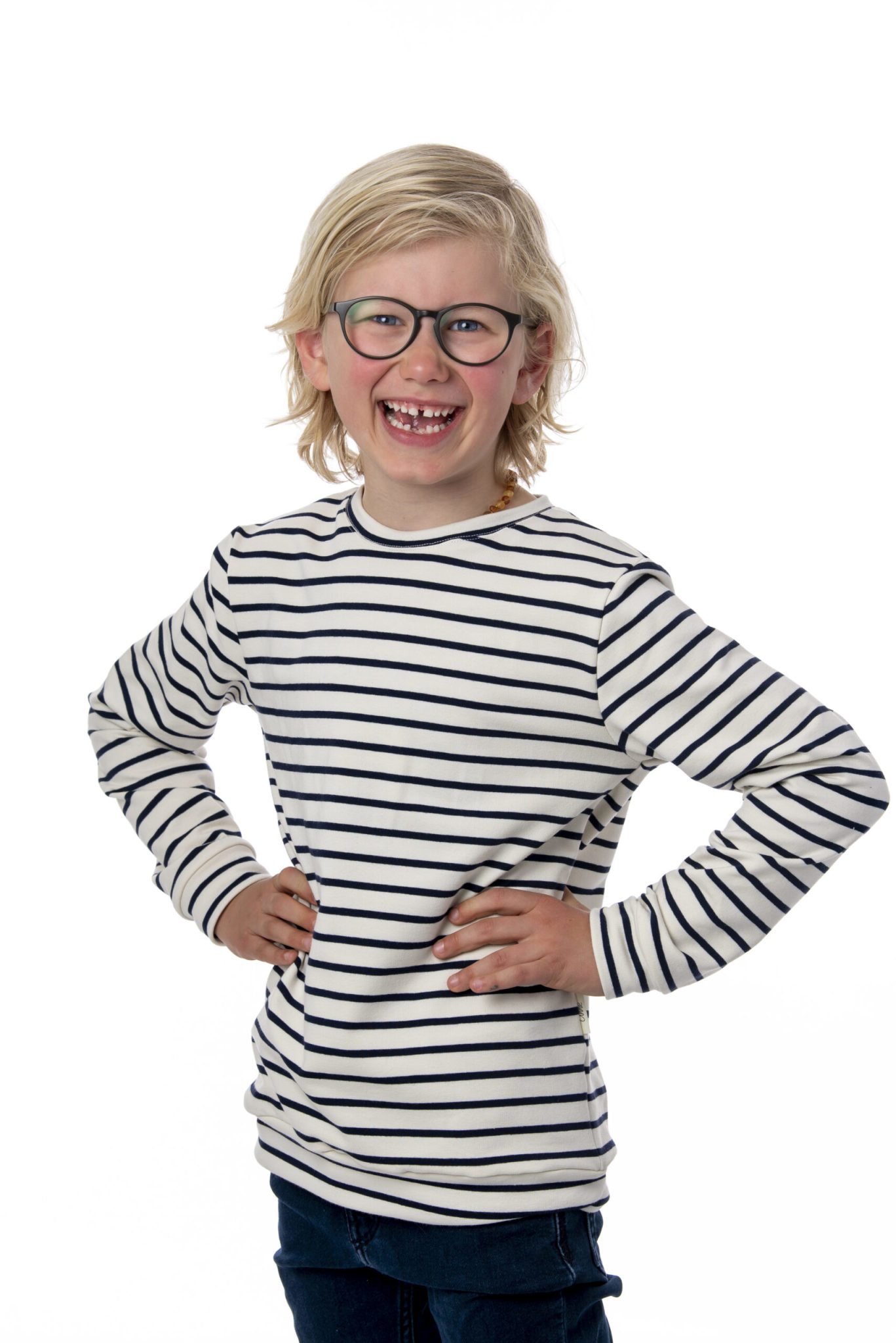 Naaipatroon Sweater, inclusief duidelijke werkbeschrijving. De sweater is gemaakt van wat dikkere tricotstof/sweaterstof. Hij is te maken in de maten 98 tot en met 140.... Lees meer