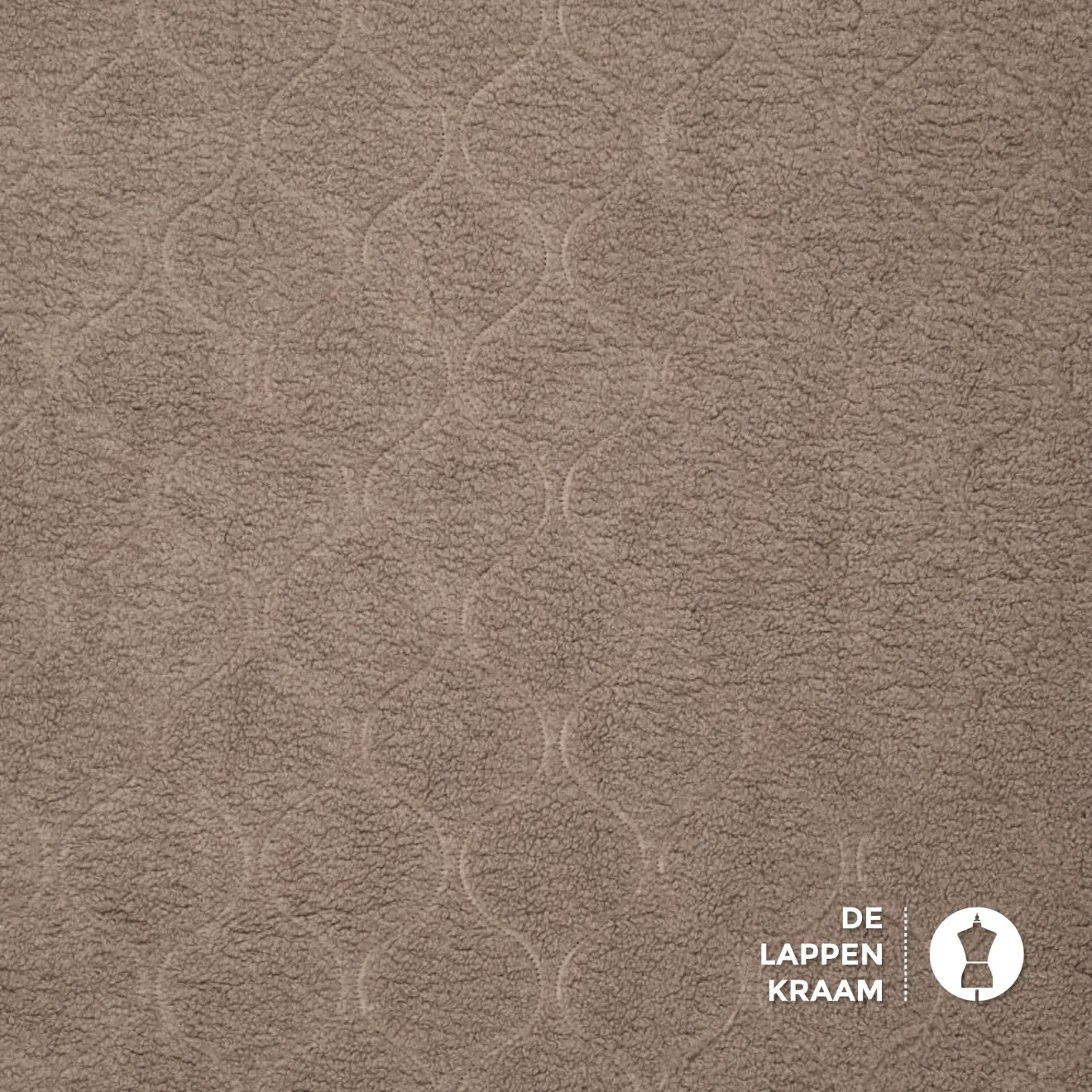 Heerlijk zachte, gebreide stof met een ingebreid patroon van een soort ballonvormen, waarbij het lijkt alsof de patroon erin geschoren is. De stof is licht rekbaar in de lengte en breedte.... Lees meer